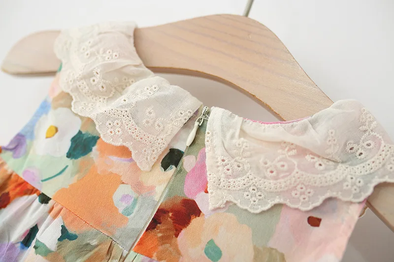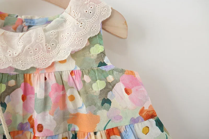 Ropa de verano para niñas pequeñas, 2 piezas, moda coreana, bonito cuello de muñeca, sin mangas, estampado, vestidos de princesa para bebés + bolsa, vestido para niños B034