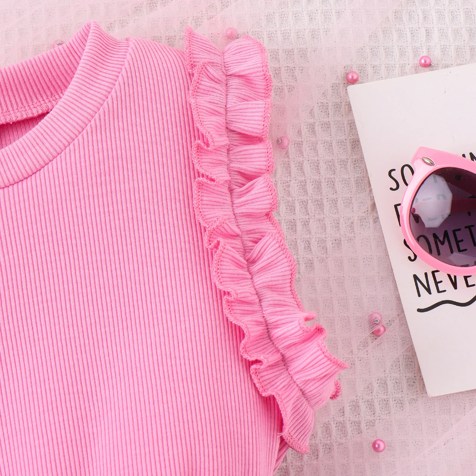 Comprar Ropa de verano para niñas pequeñas, Tops rosas sin mangas a la moda coreana, pantalones cortos vaqueros y cinturón, ropa de Boutique para niños, conjuntos para niños B052
