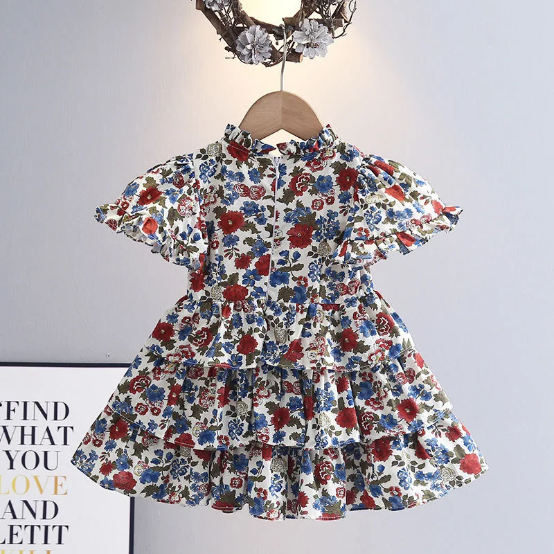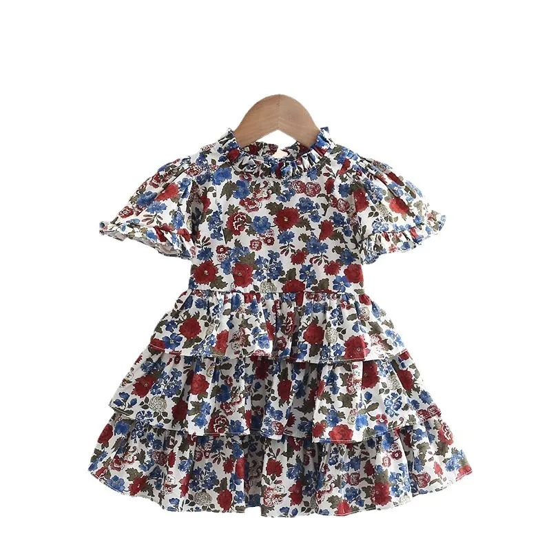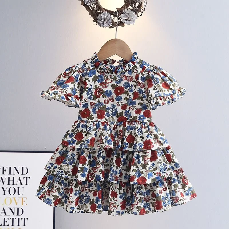 Nueva ropa de verano para niñas pequeñas, bonito vestido estampado a la moda para niños, disfraz informal de algodón para niños, ropa deportiva infantil para 0-5 años