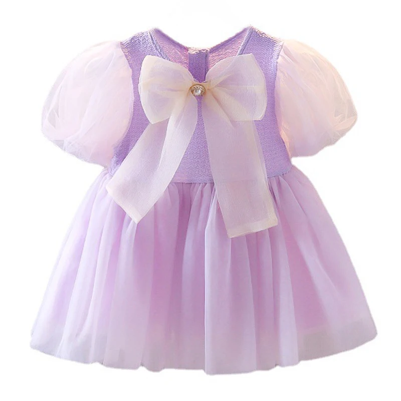 Comprar Ropa de verano para niñas recién nacidas, moda coreana, malla con lazo grande, vestido de princesa de manga corta, vestidos de cumpleaños de lujo, ropa de bebé BC640
