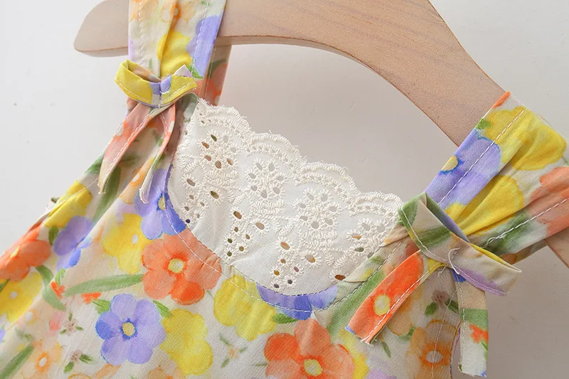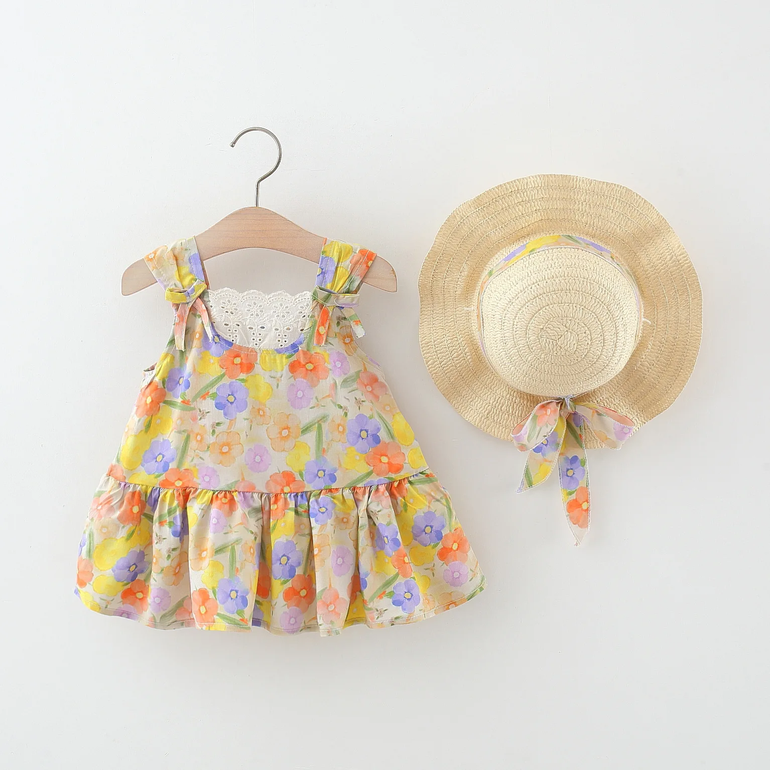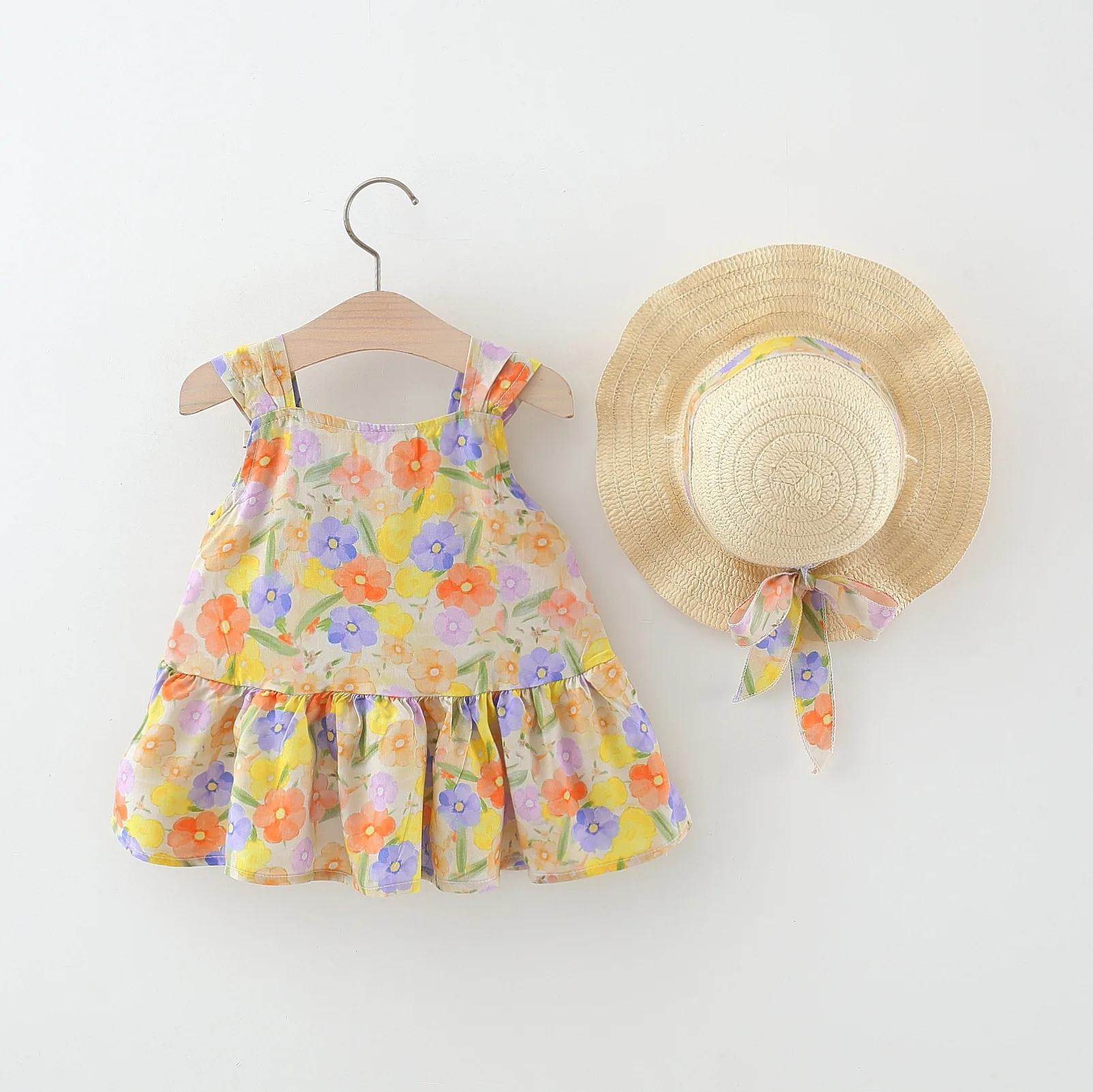 Ropa de verano para niño niña, 2 piezas, moda coreana, bonito vestido de princesa sin mangas de algodón con estampado de flores + sombrero para el sol, vestidos para bebé BC494