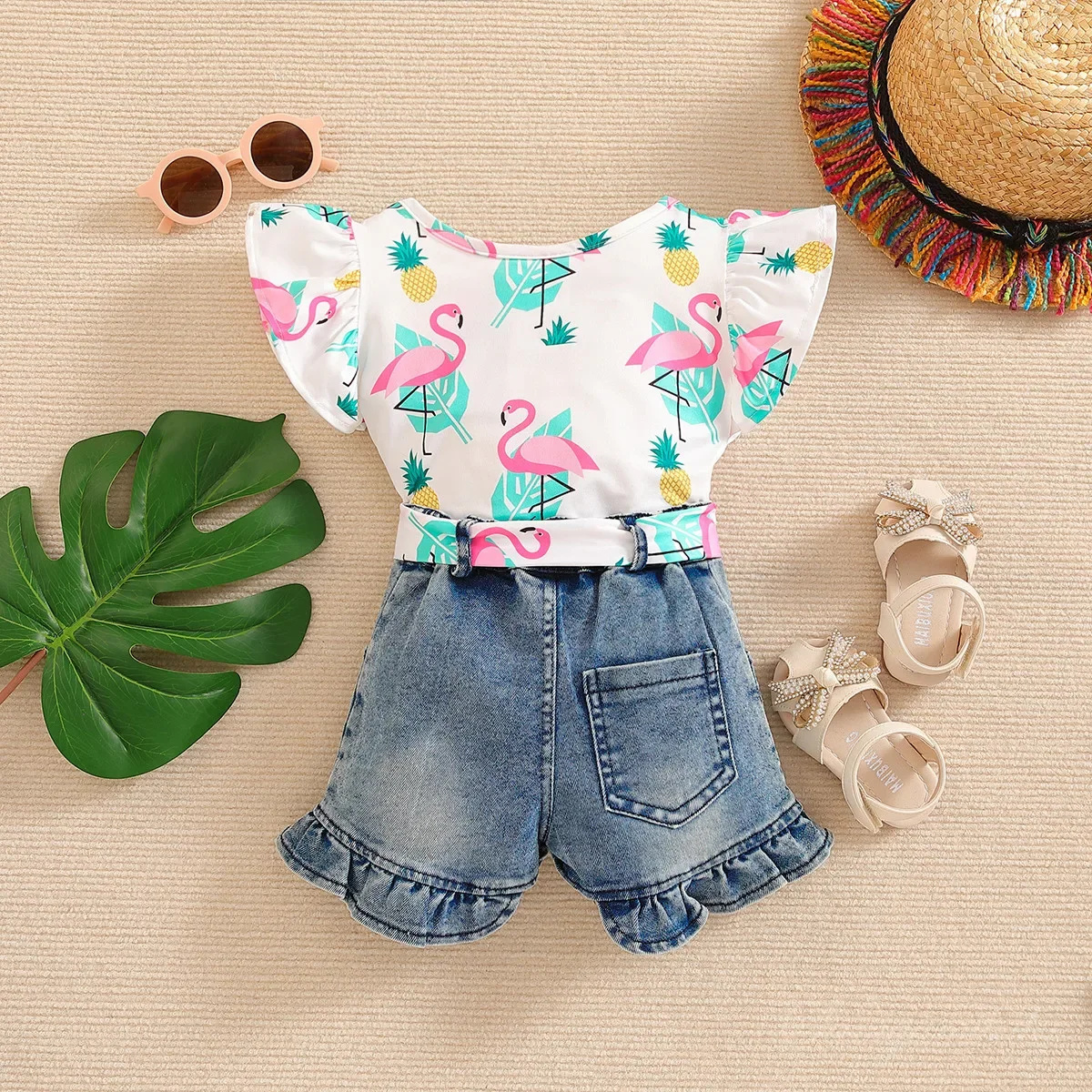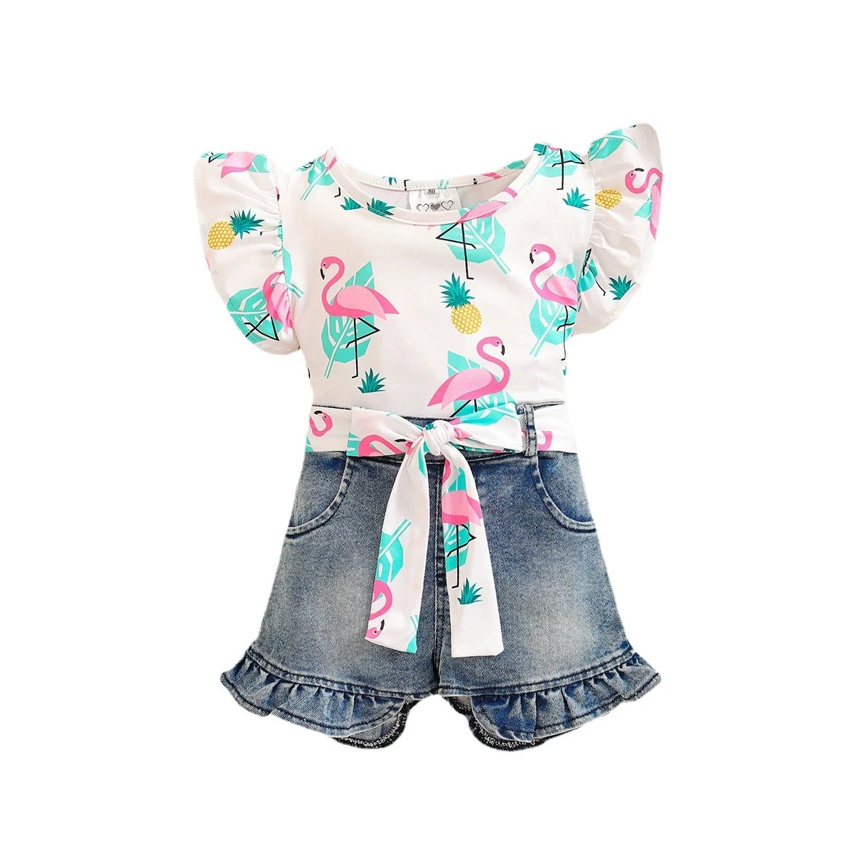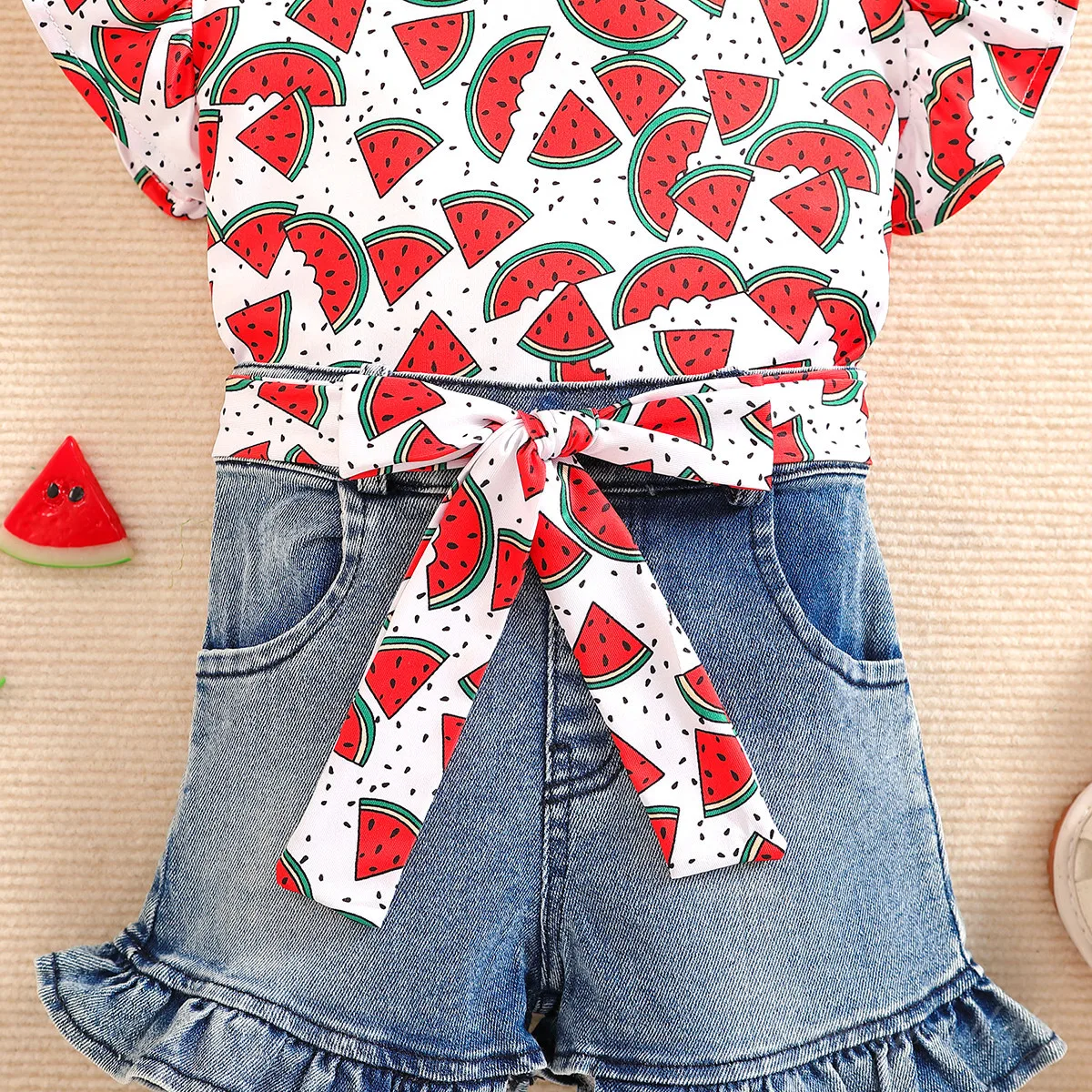 Ropa de verano para niño niña, moda coreana, camisetas sin mangas con estampado de sandías para bebé + pantalones cortos de mezclilla, ropa de Boutique para niños BC1853