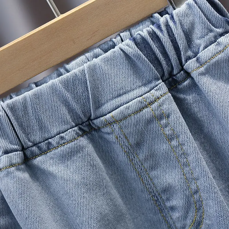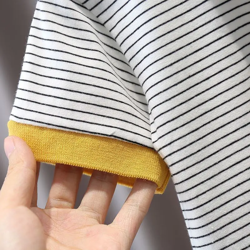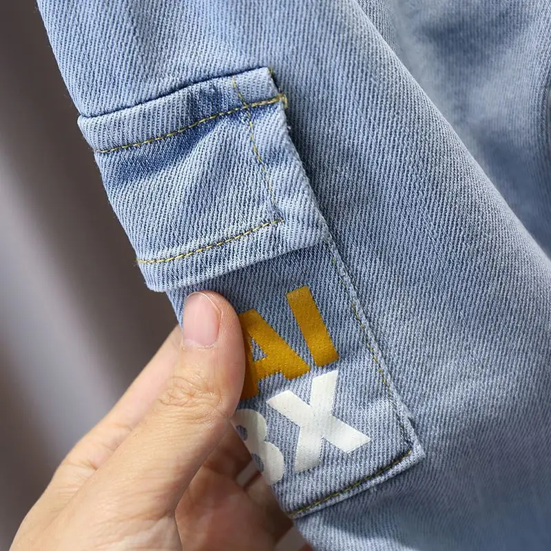 Ropa de verano para niño pequeño, Tops de manga corta de algodón con letras a rayas informales a la moda coreana + pantalones vaqueros Boutique, ropa para niños B005