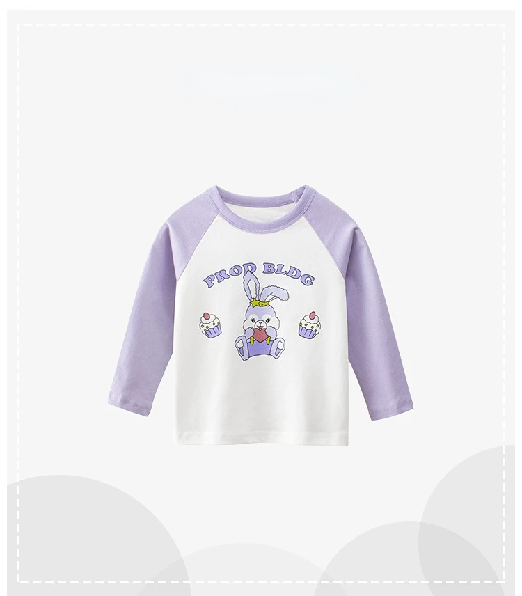 Comprar Ropa de verano para niños, camiseta para niña, camiseta de manga larga con contraste de Color de dibujos animados, ropa para bebé