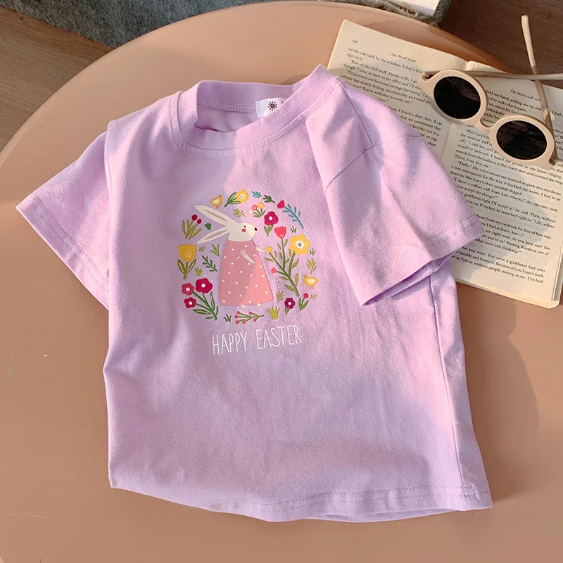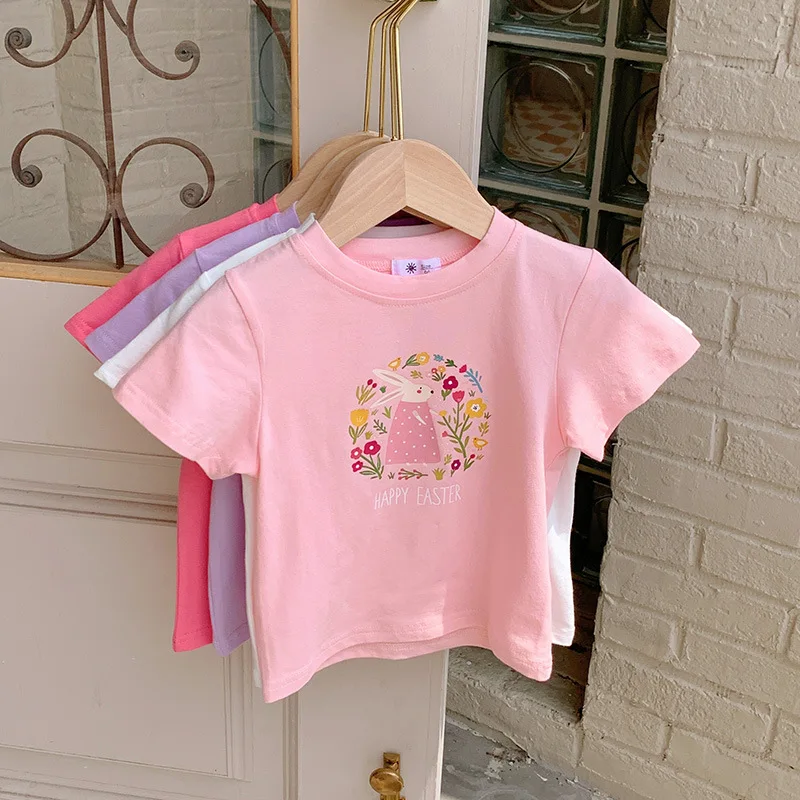 Ropa de verano para niños, camiseta, ropa para niños, camisetas de dibujos animados de verano para niñas, ropa de algodón de conejo de manga corta para princesa