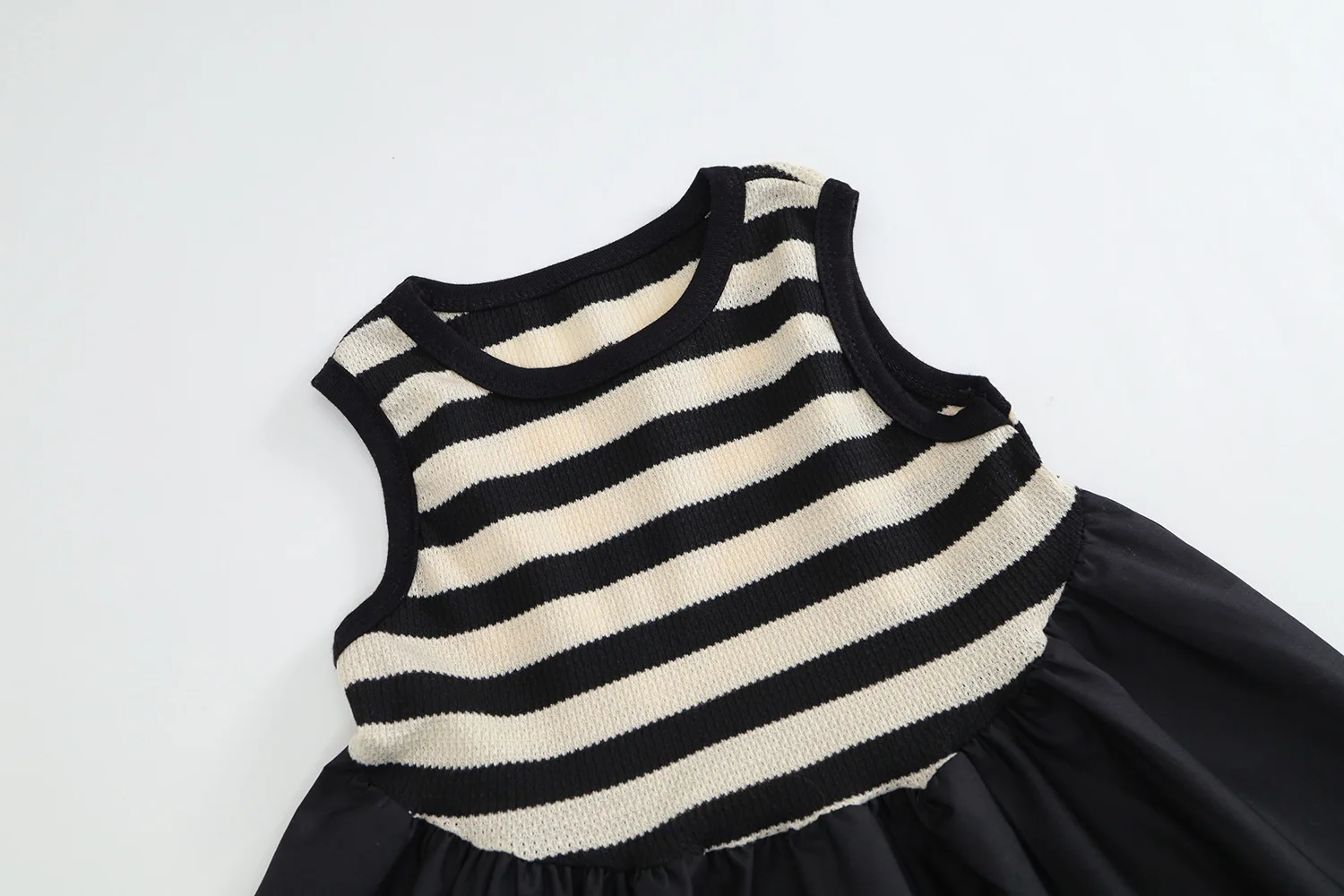 Ropa de verano para niños, moda coreana para niñas, vestidos de princesa sin mangas a rayas para bebés, vestido para niños pequeños, ropa de Boutique para niños B060