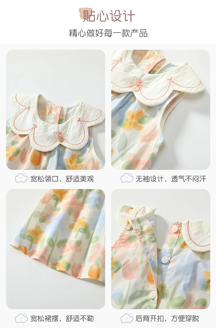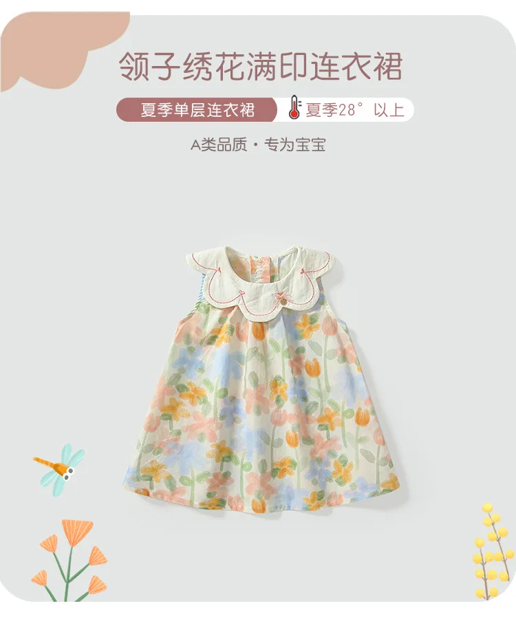 Ropa de verano, vestidos coreanos bonitos de flores para niña, cuello de muñeca sin mangas, vestido de princesa de algodón para bebé, ropa de Boutique para niños B158
