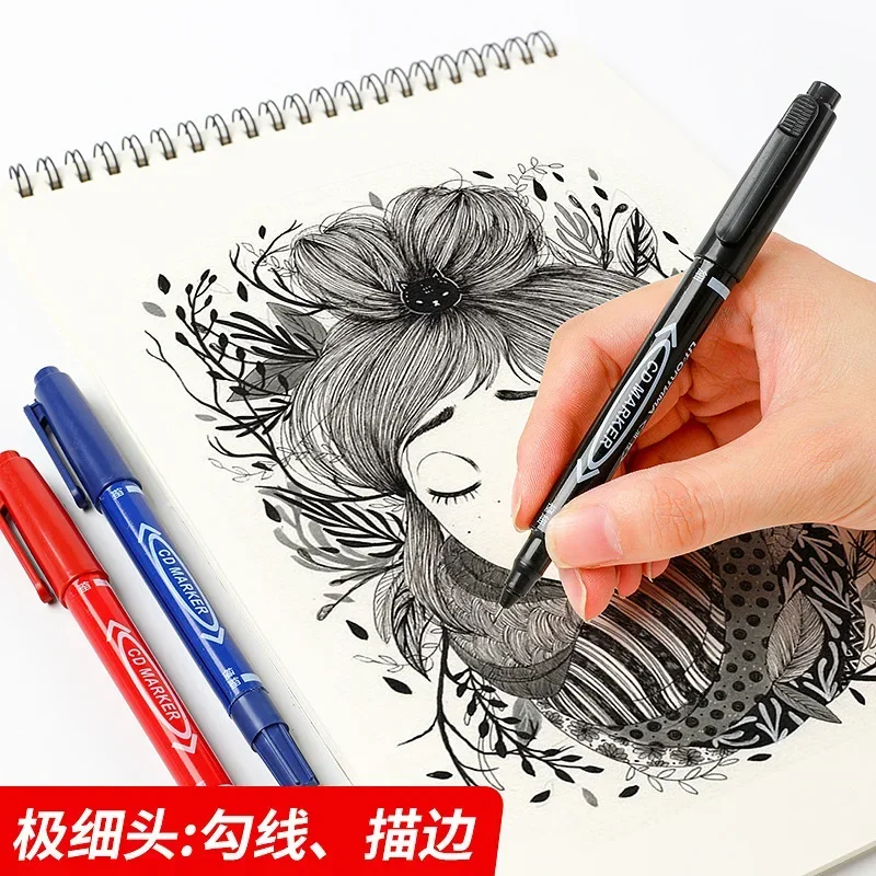 Comprar Rotulador de arte permanente de doble punta, 0,5/1 Mm, secado rápido, tela de punta fina, dibujo de Metal, caligrafía, agujero profundo, 1 ud.