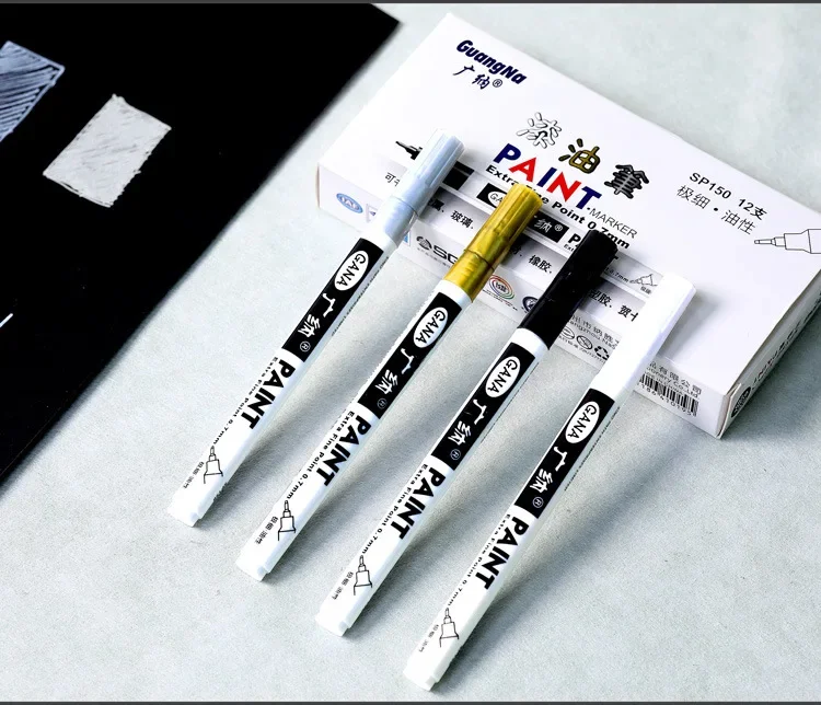 Comprar Rotulador de pintura DIY, pintura reflectante, bolígrafo metálico, marcador permanente dorado y plateado, pintura de modelo escolar, 1 ud.