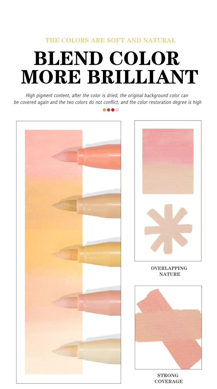 Rotuladores acrílicos de cabeza suave de nailon, rotuladores de tono de piel de 12/24 colores, resistente al agua, punta de pincel suave, pintura de figuras de Color de piel