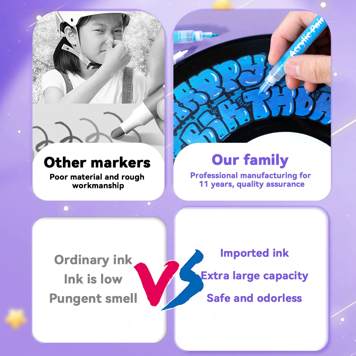 Comprar Rotuladores acrílicos coloridos 12-48, arte tíable, pinturas DIY, estudiantes, niños, Graffiti, escuela, suministros de papelería de oficina