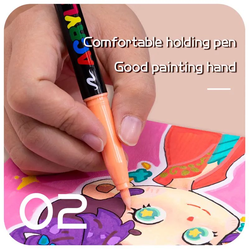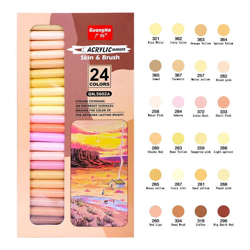 Comprar Rotuladores de arbusto suave líquido recto de 12/24 colores, rotuladores de tono de piel, marcadores acrílicos de cabeza suave de nailon, bolígrafo impermeable, pincel suave