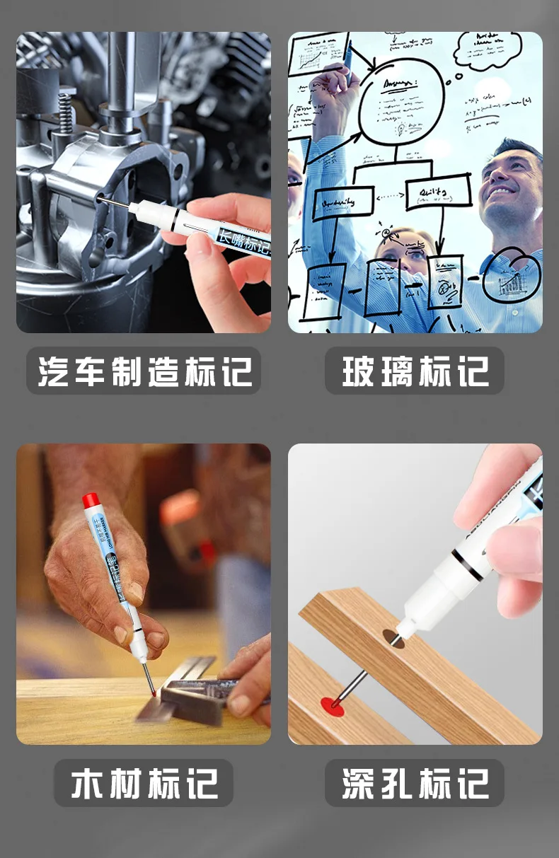 Comprar Rotuladores de cabeza larga multiusos para decoración de azulejos de carpintería, rotuladores de Agujero profundo, tinta roja/negra/azul/verde, 1 Uds.