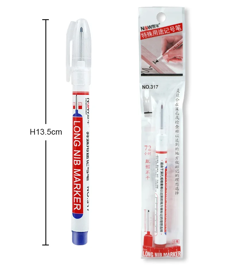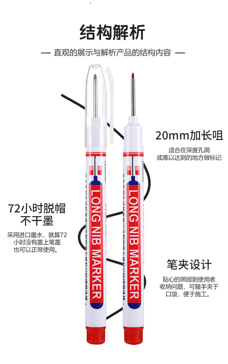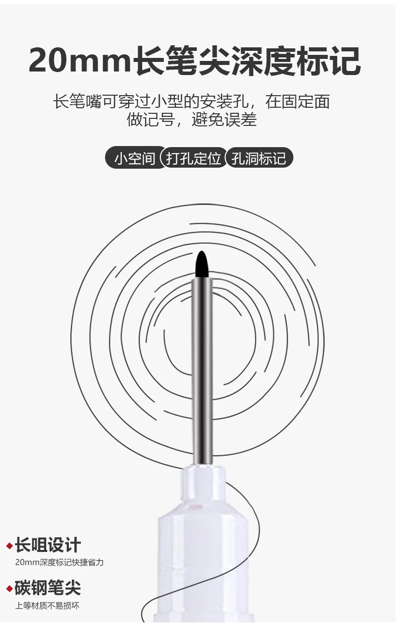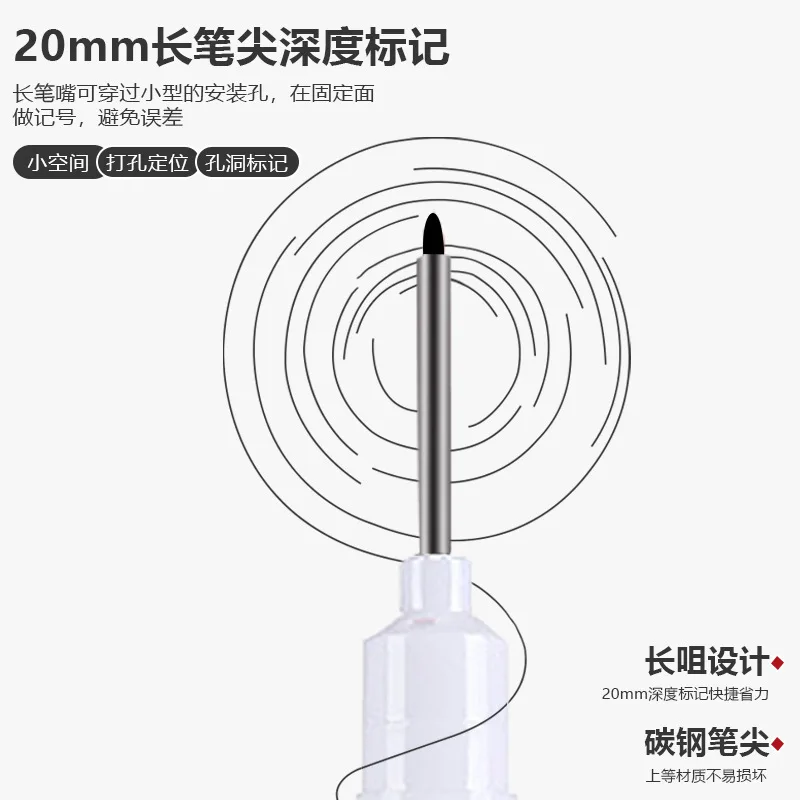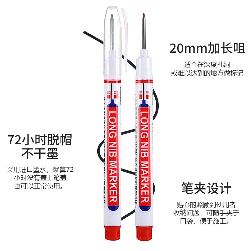 Rotuladores de cabeza de punta larga con agujero profundo de 20mm para bolígrafo perforador de Metal, impermeable, decoración de carpintería para baño, multiusos, 1 ud.