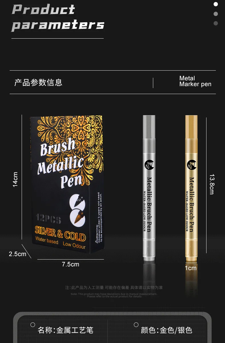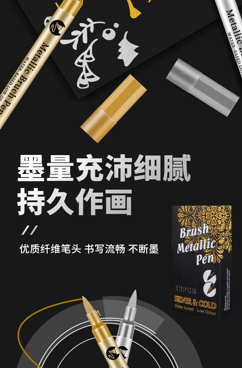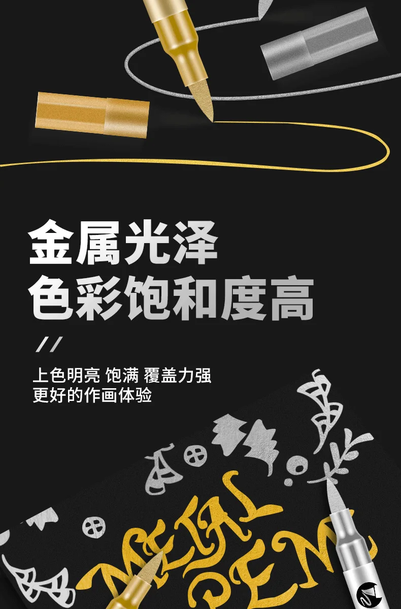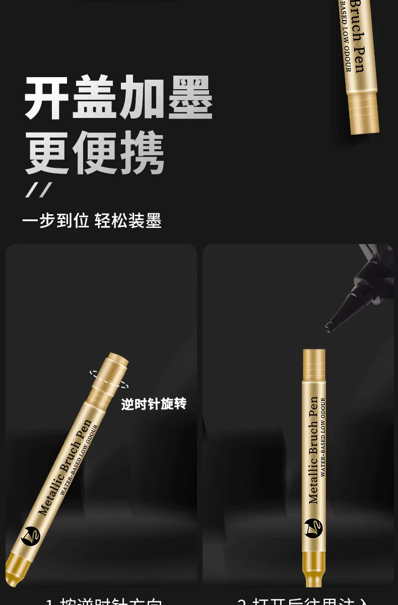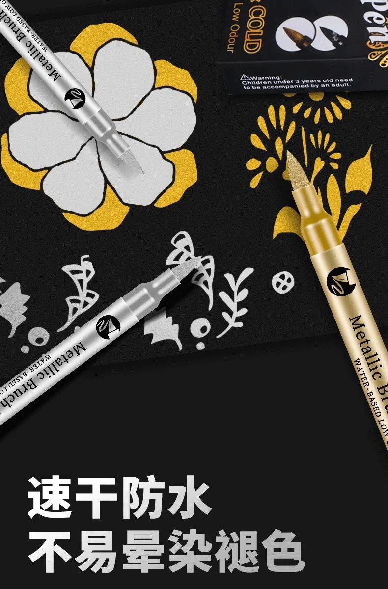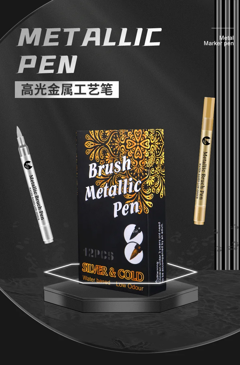 Rotuladores de colores de cabeza suave, tarjeta de felicitación de Metal brillante, pintura, bolígrafos a base de agua, firma de actividad, bolígrafo dorado, cabeza suave, 1 ud.