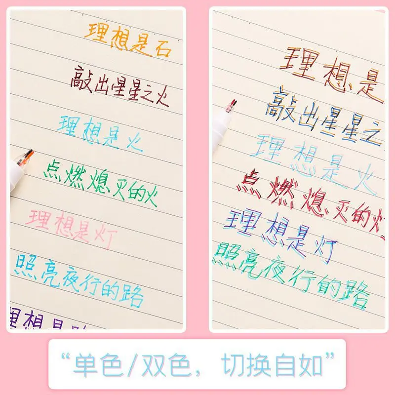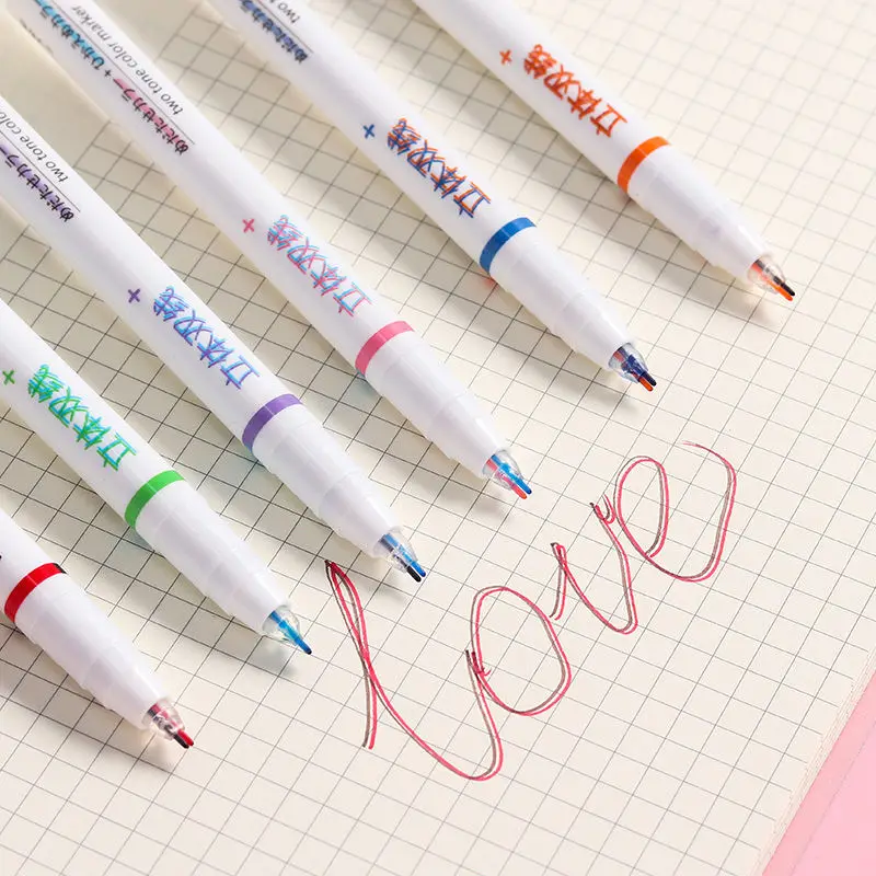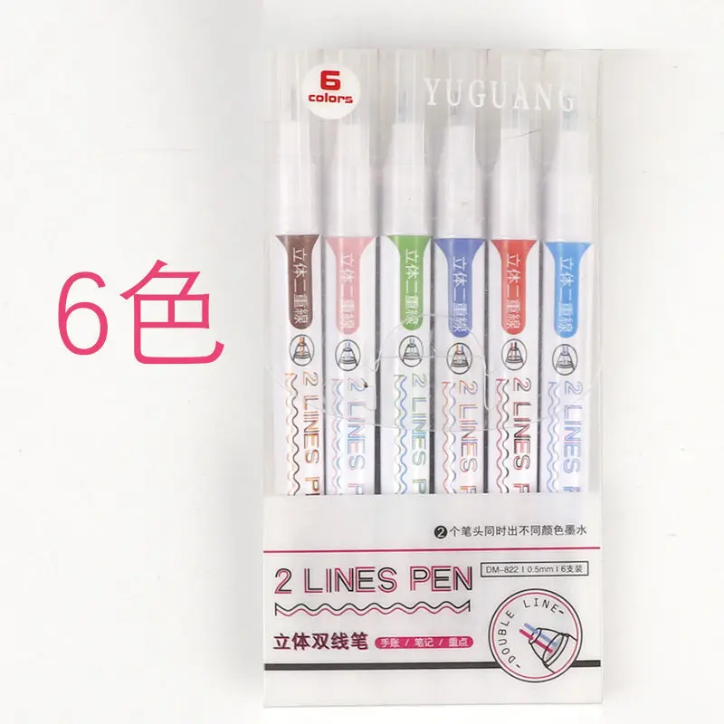 Comprar Rotuladores coloridos con efecto estéreo de línea de doble color, 6 uds., doble color de un solo cabezal, bolígrafos de colores fluorescentes Kawaii