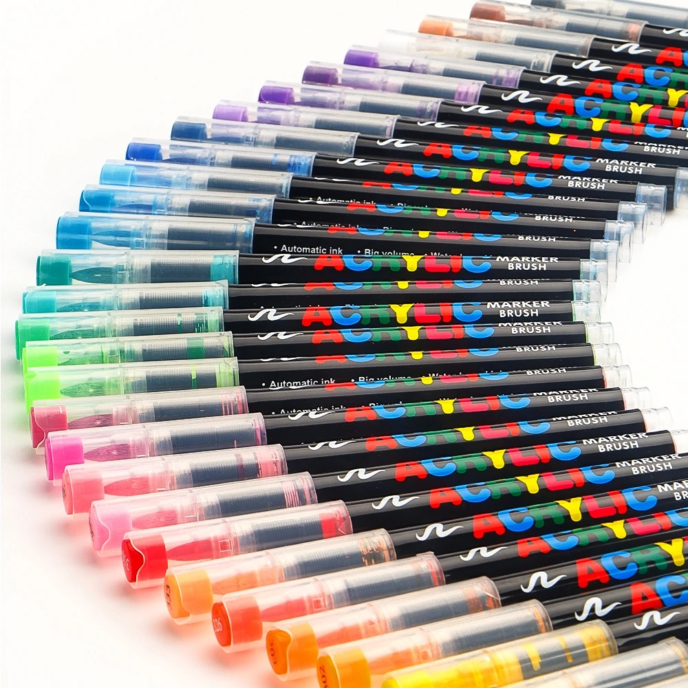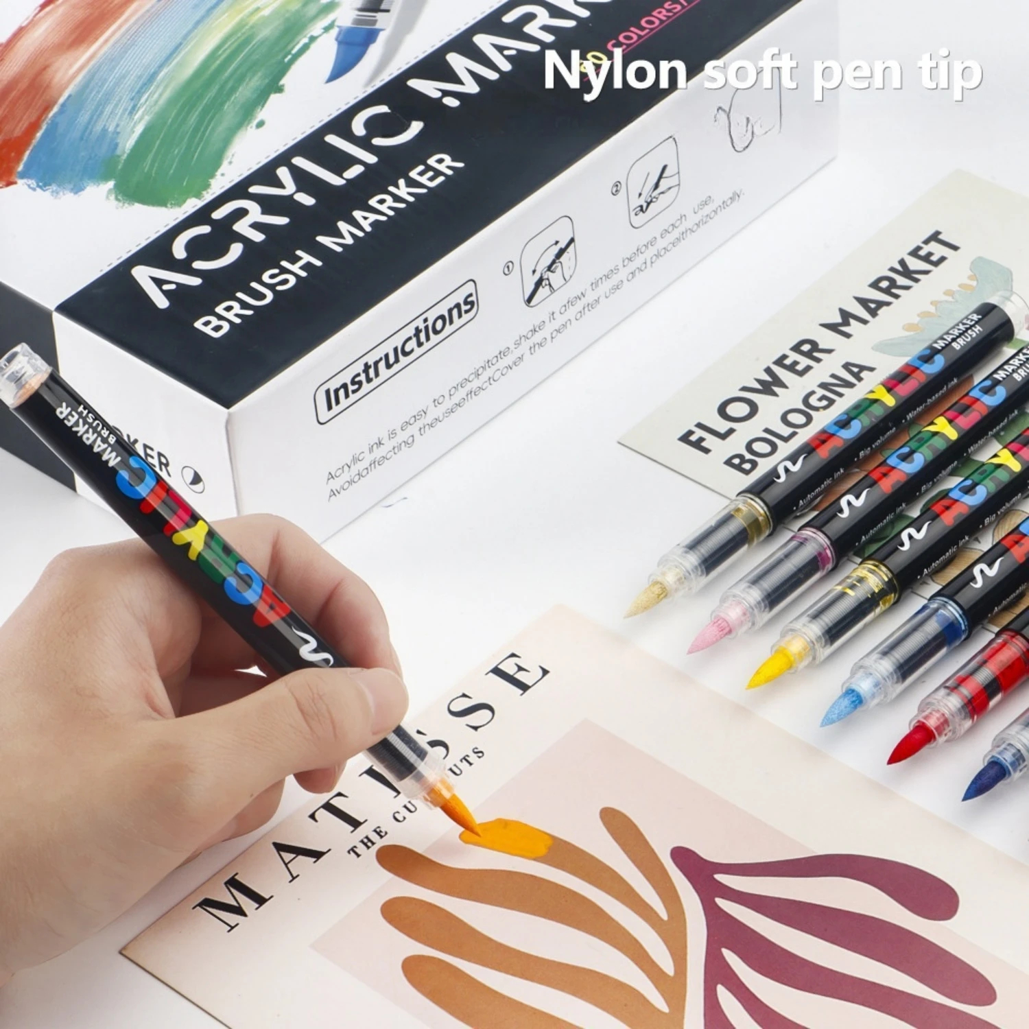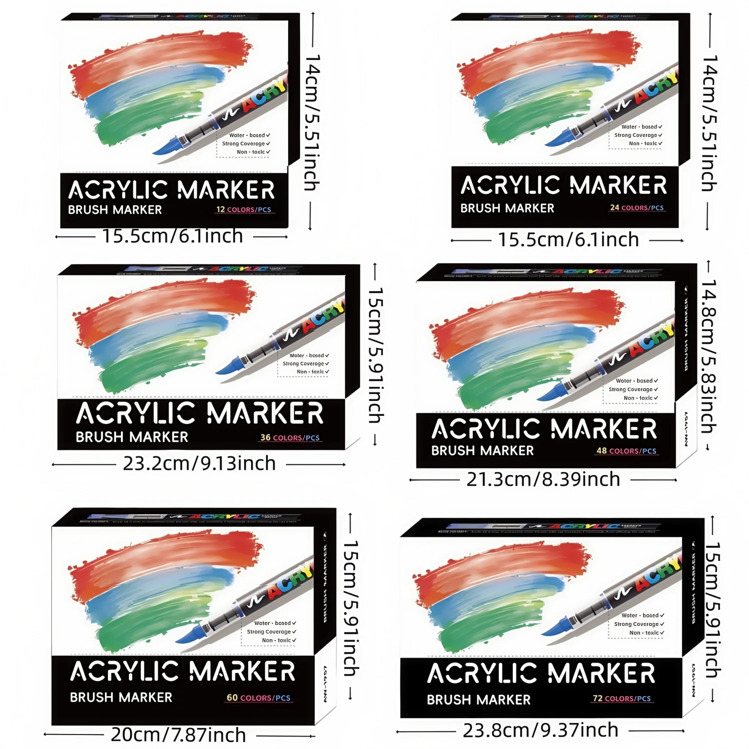 Marcadores de pintura acrílica Punta de pincel, bolígrafos de pintura acrílica de primera calidad para pintura, roca, lienzo, madera, vidrio, cerámica, tela, juego de marcadores de pintura acrílica de secado rápido para suministros de arte