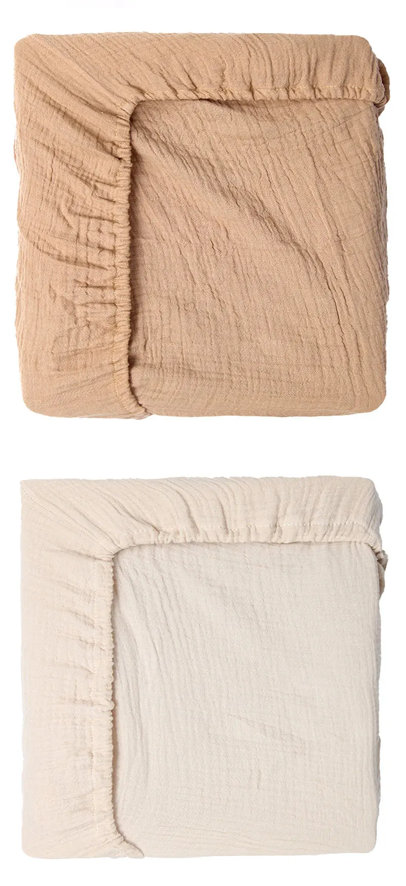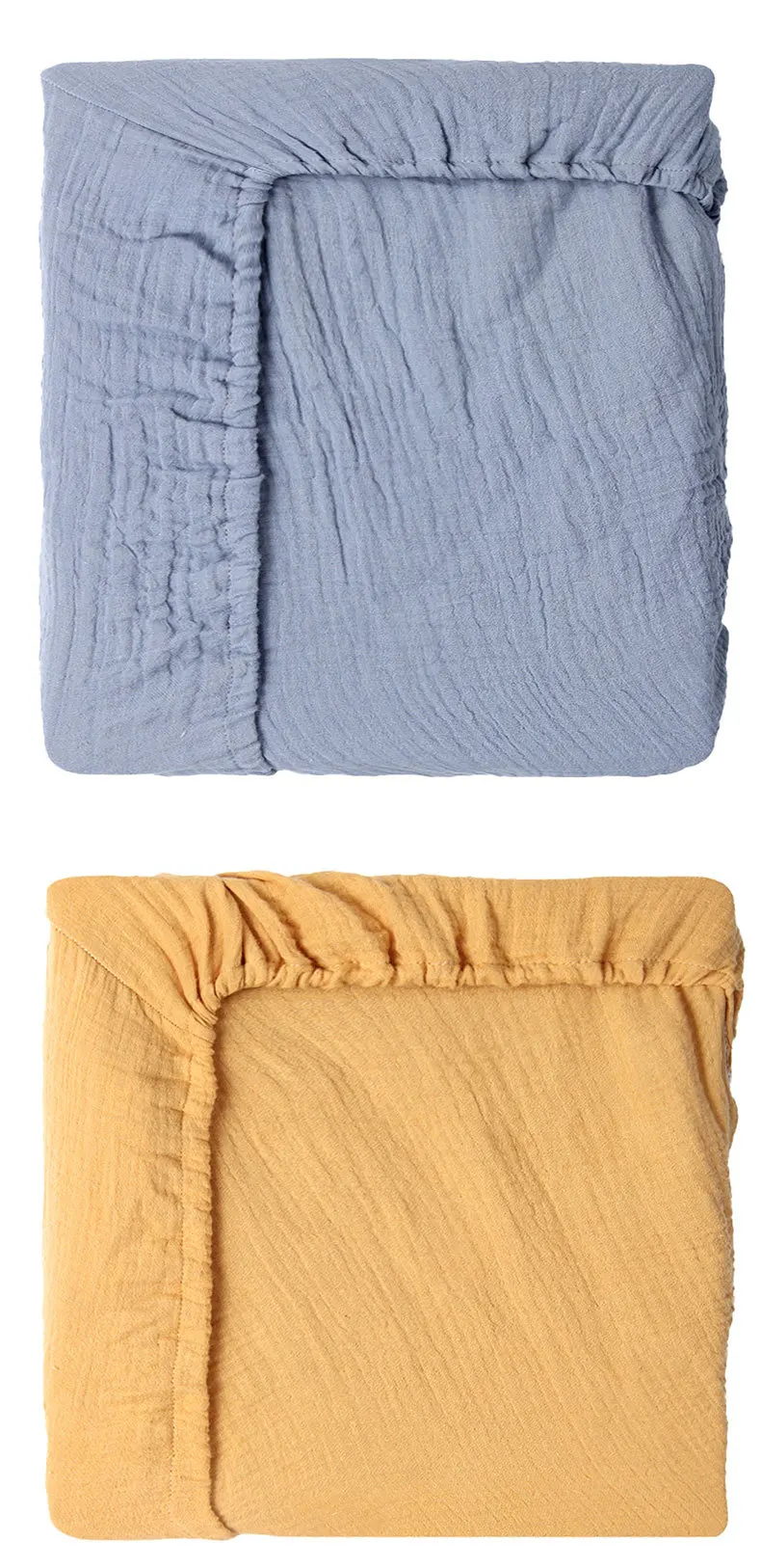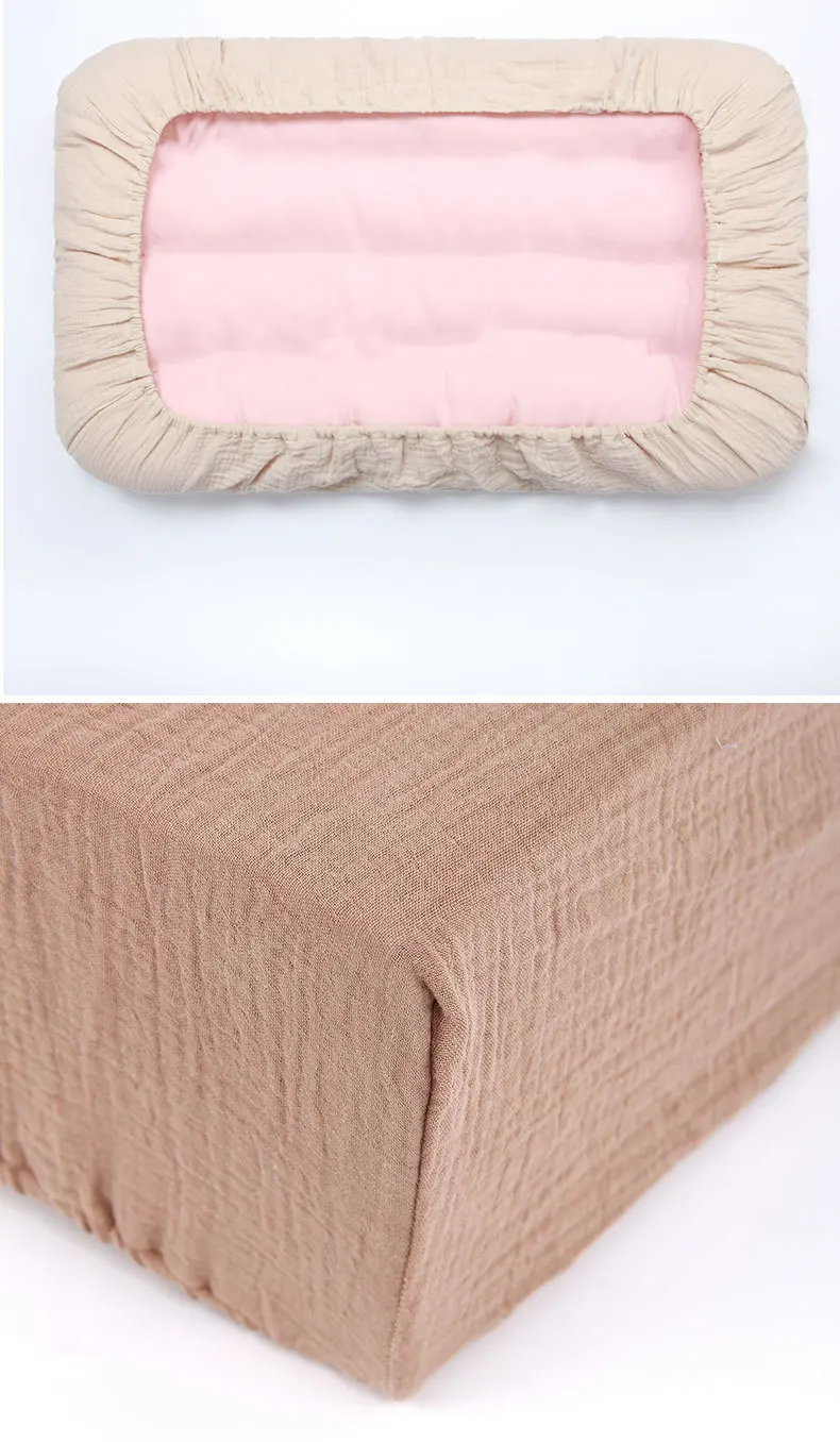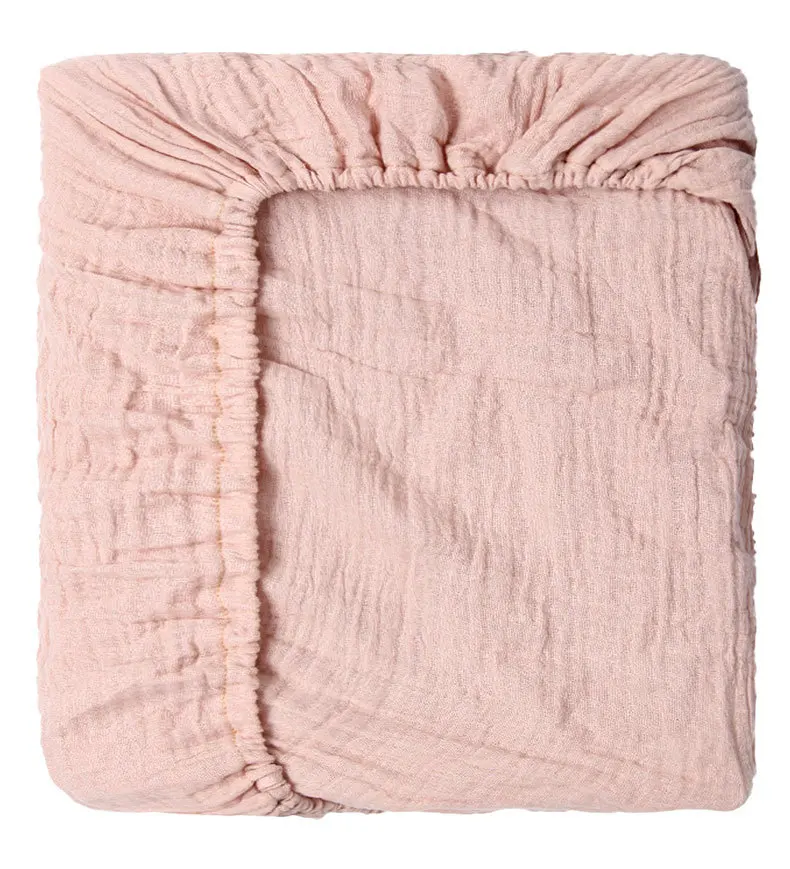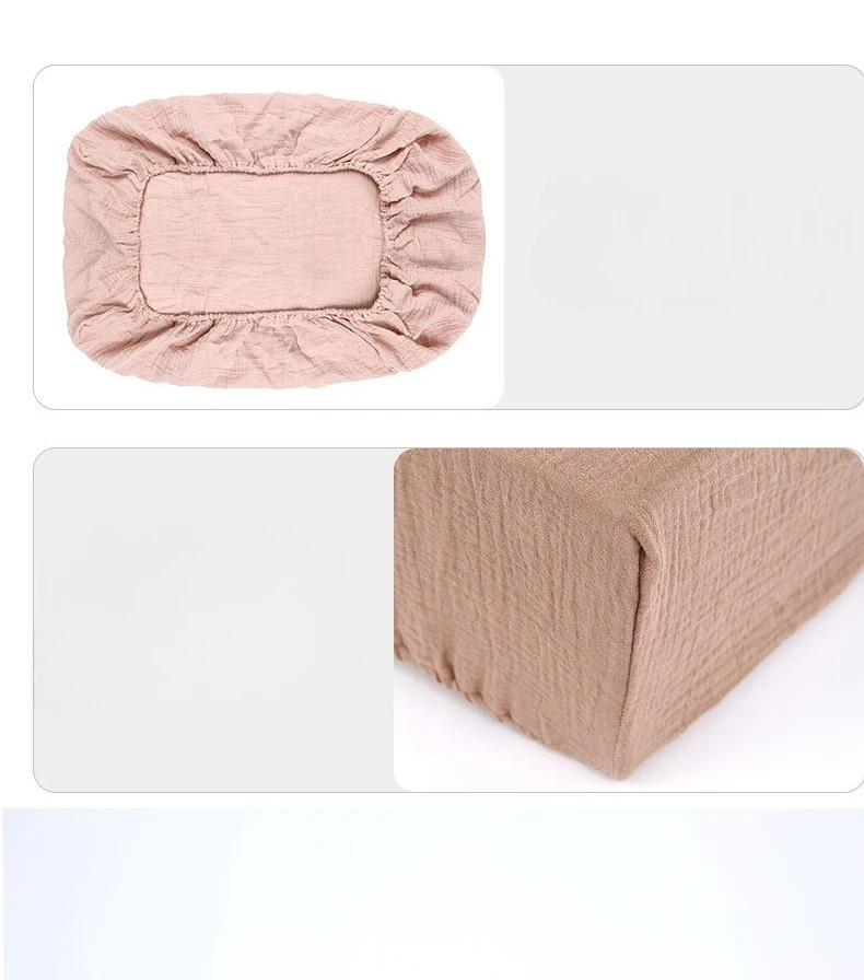 Sábana ajustable para cuna de muselina arrugada de algodón 100% para bebé, suave, transpirable, Color sólido, funda de colchón para cuna de bebé, ropa de cama