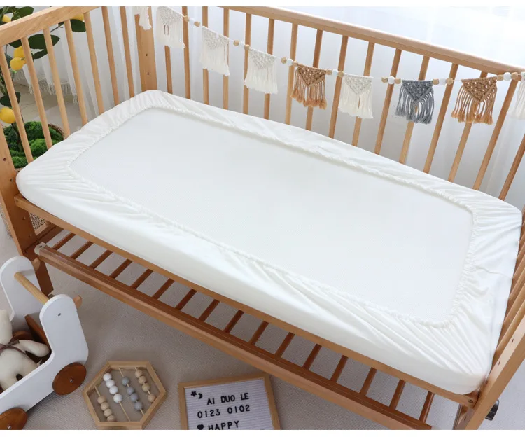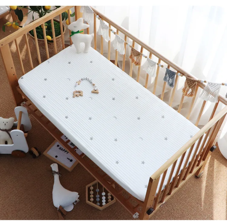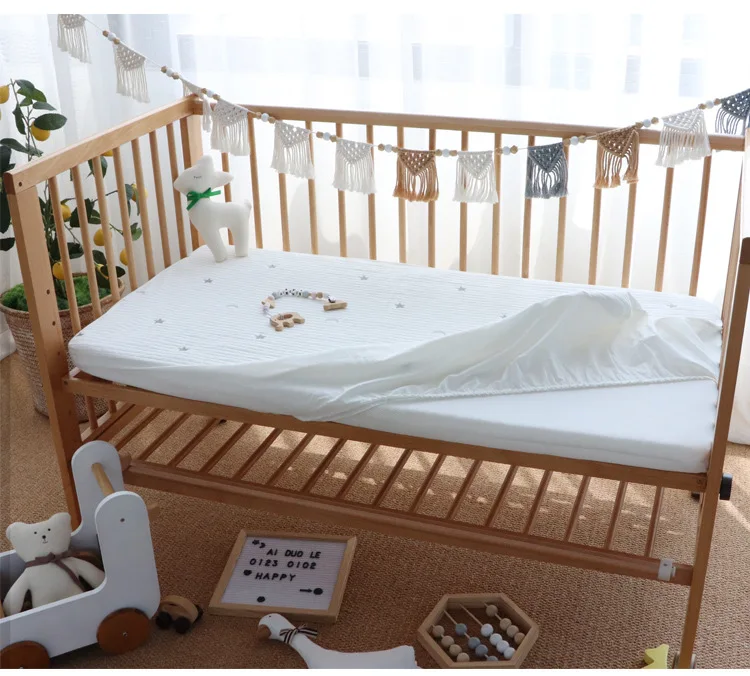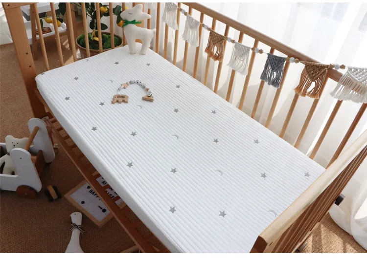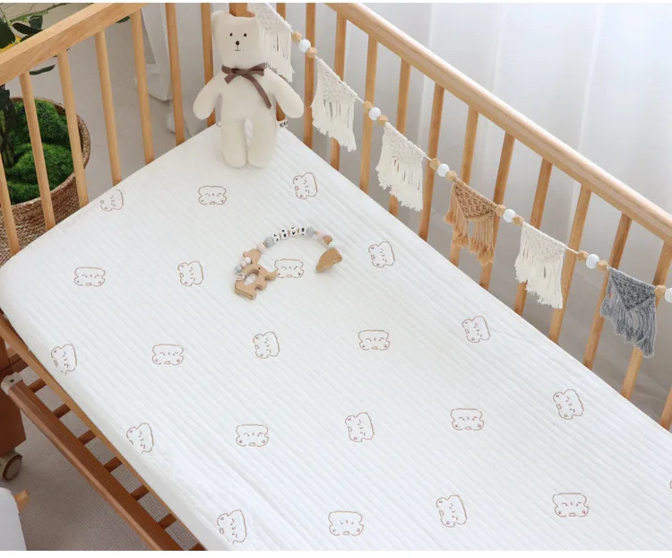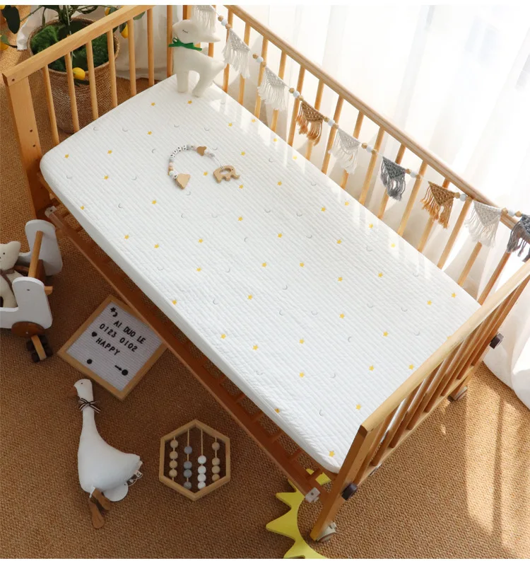 Sábana acolchada de algodón coreana con forma elástica, cereza, limón, oso, estrella, bordado, cuna para niños, sábanas, funda de colchón de lino para cama