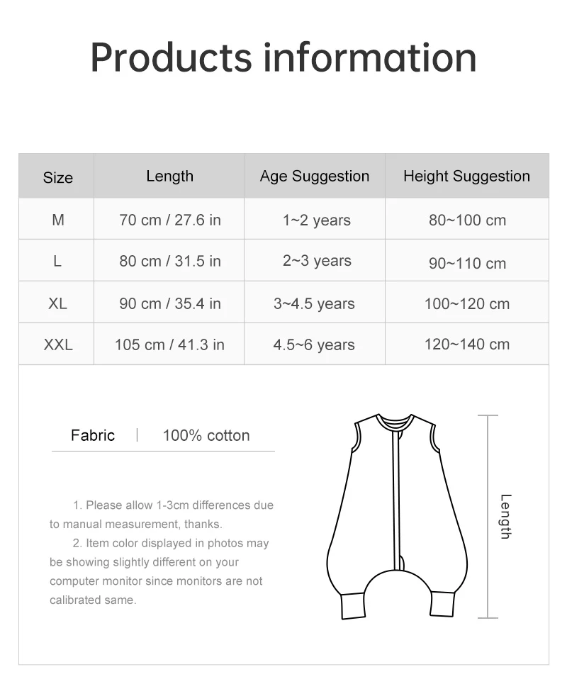 Tomé el xxl, fue un error. Mi bebé es muy alto y tiene 1,8 meses. Muy muy grande. Lo devolví y en su lugar recibí el L. A ver qué tal... En general, la tela es transpirable y delgada. Muy suave. Fácil de cerrar y abrir con cremallera.
