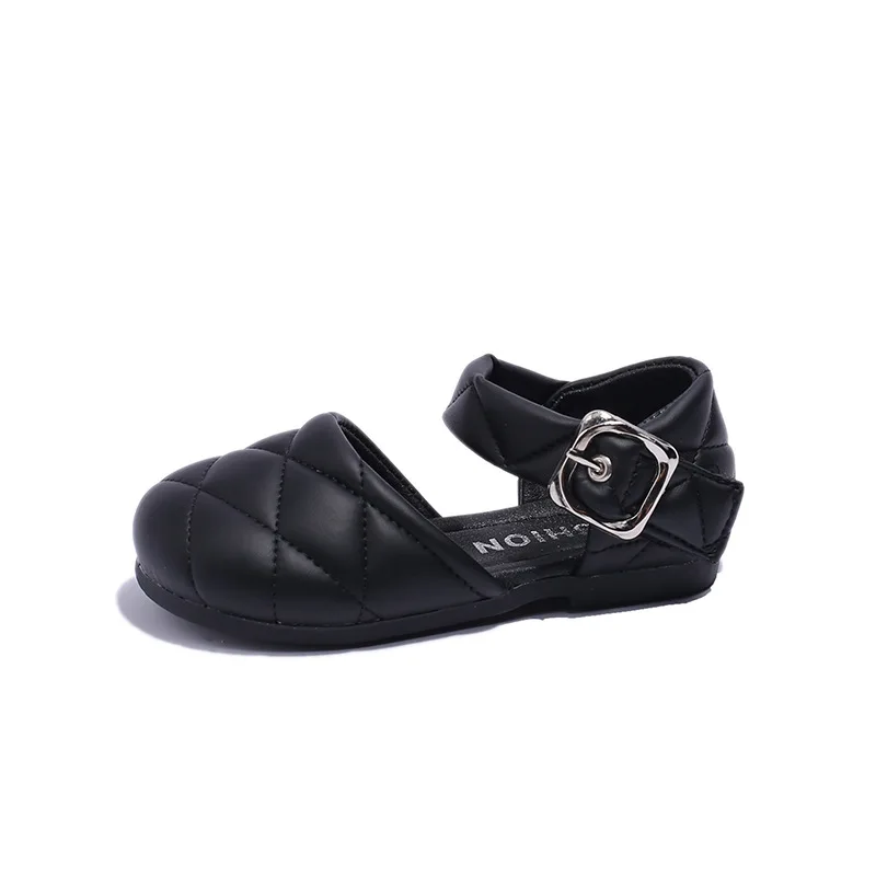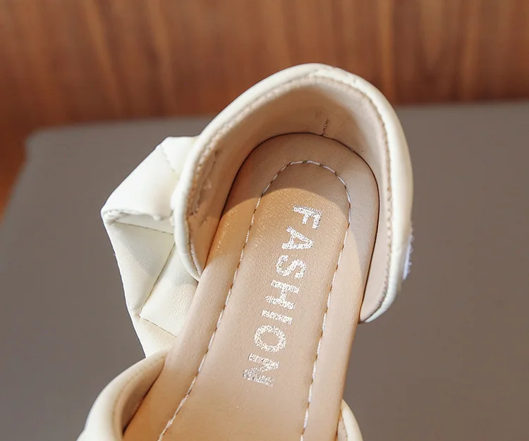Sandalias de cuero suave con punta cerrada para niñas, zapatos de princesa poco profundos, zapatos planos de vestir para bebés, toboganes antideslizantes para niñas