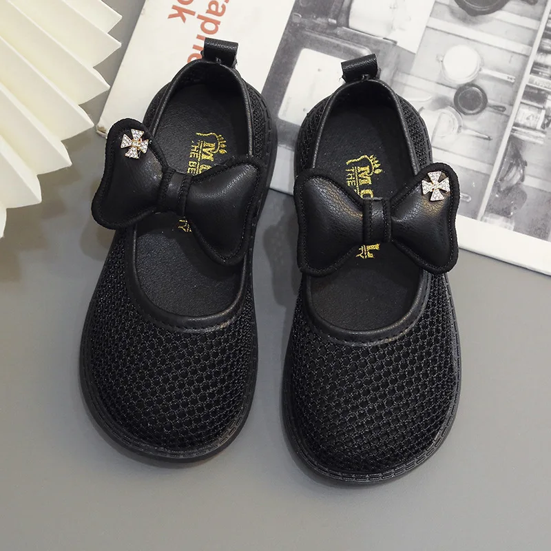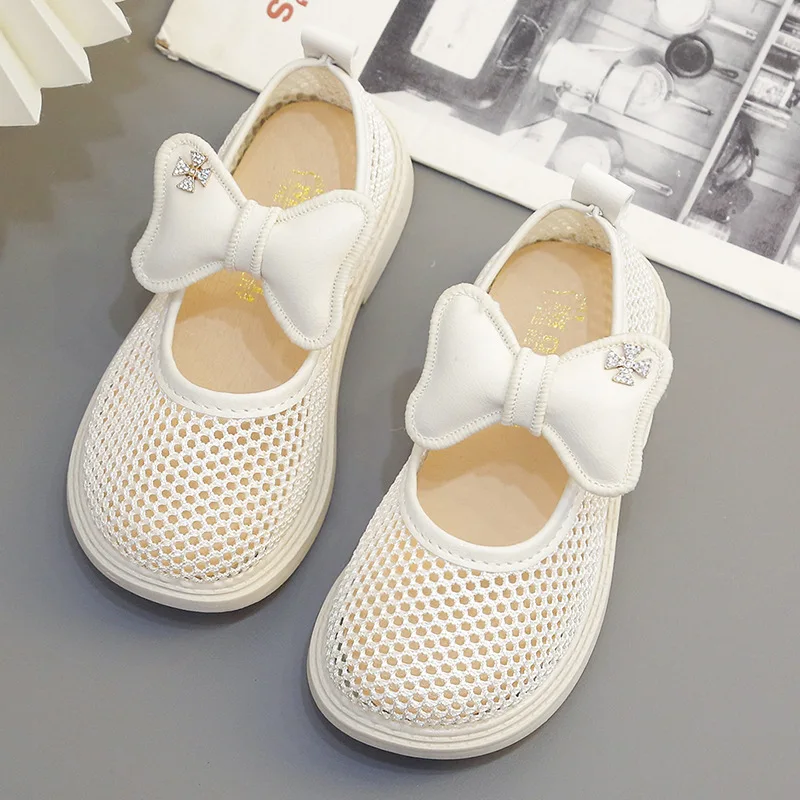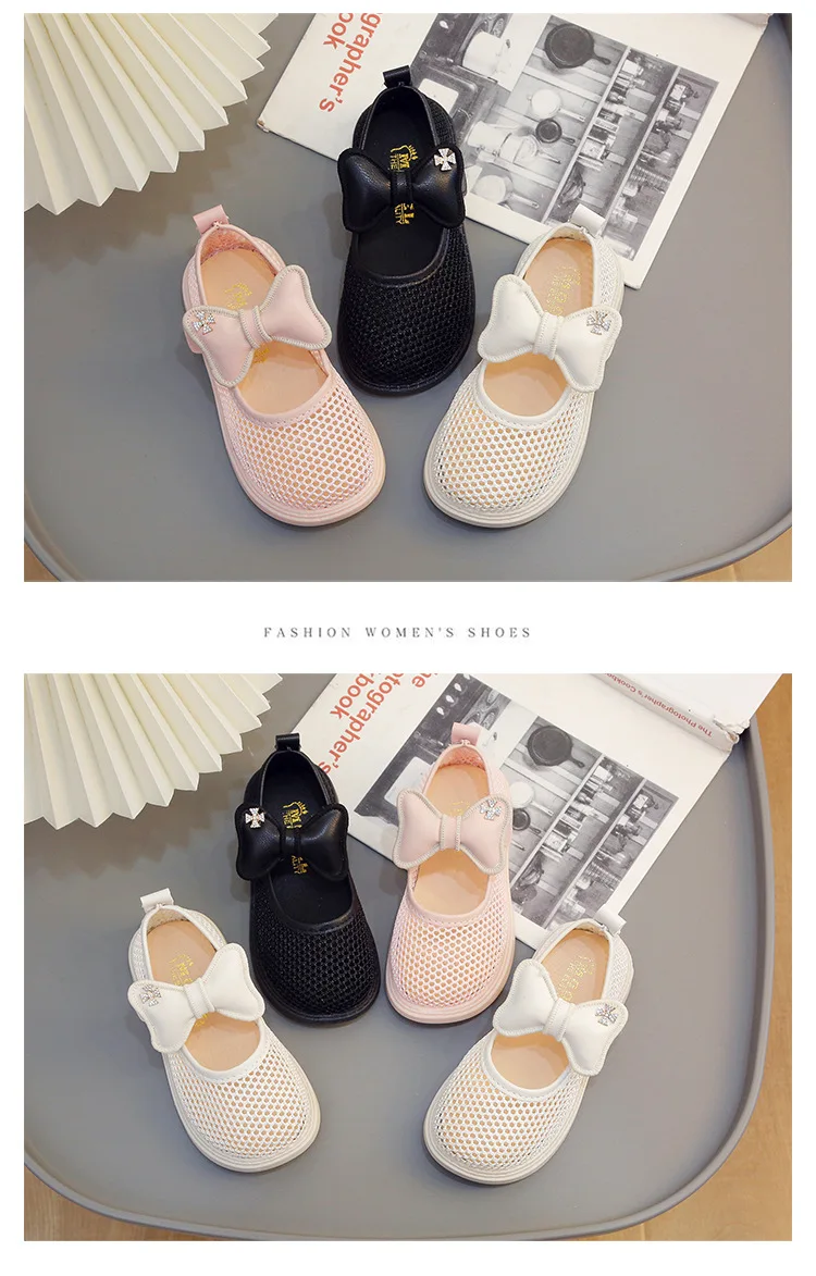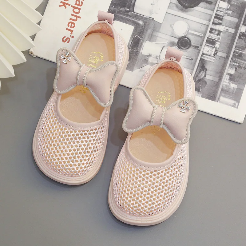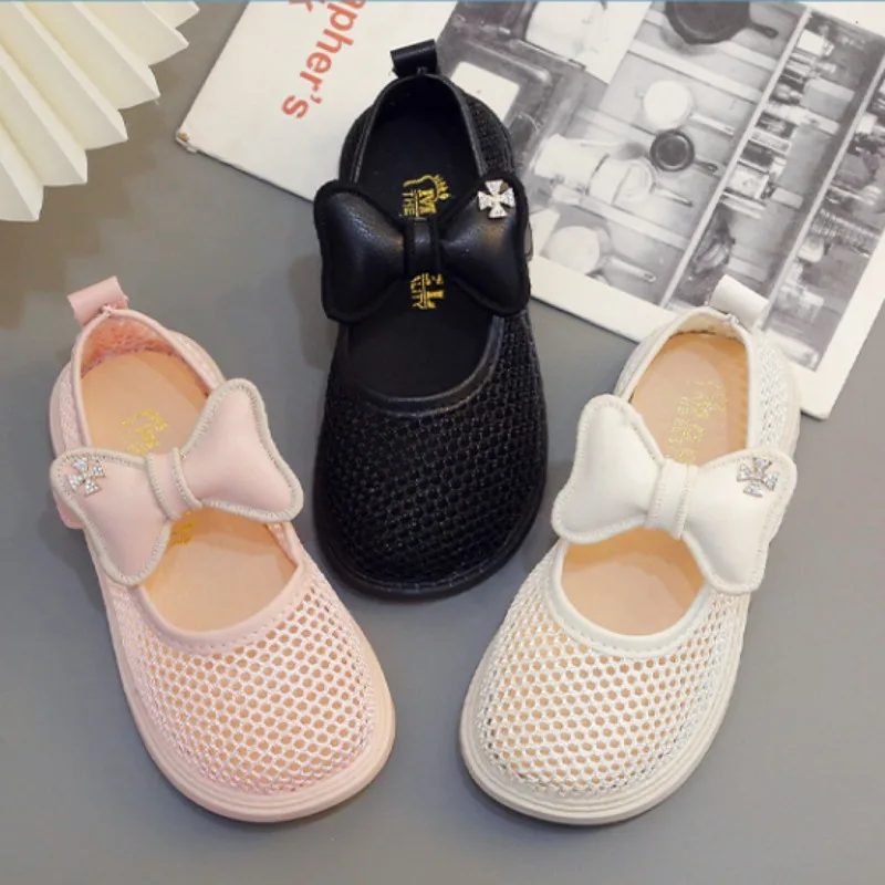 Comprar Sandalias huecas de malla transpirable para niños, zapatos de princesa con lazo suave, antideslizantes, informales para playa