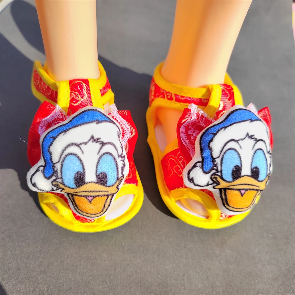 [1 par de sandalias para niños] Juego de Mickey Mouse con lazo de encaje con Peluche de pato Donald para niños pequeños 0-9M Zapato de bebé de algodón de goma para recién nacidos