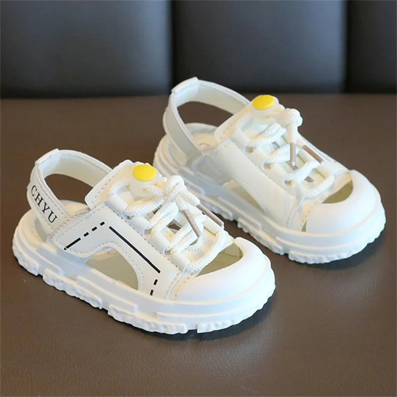 Sandalias de moda para niños y niñas, zapatos de playa con protección para los dedos del pie, de cuero PU de fondo suave, calzado deportivo para verano