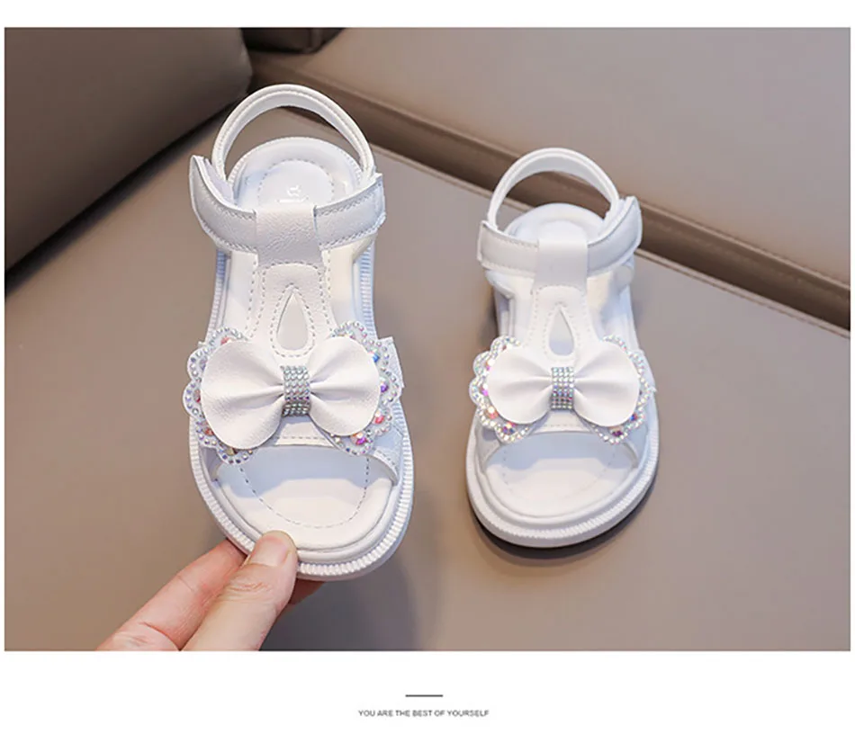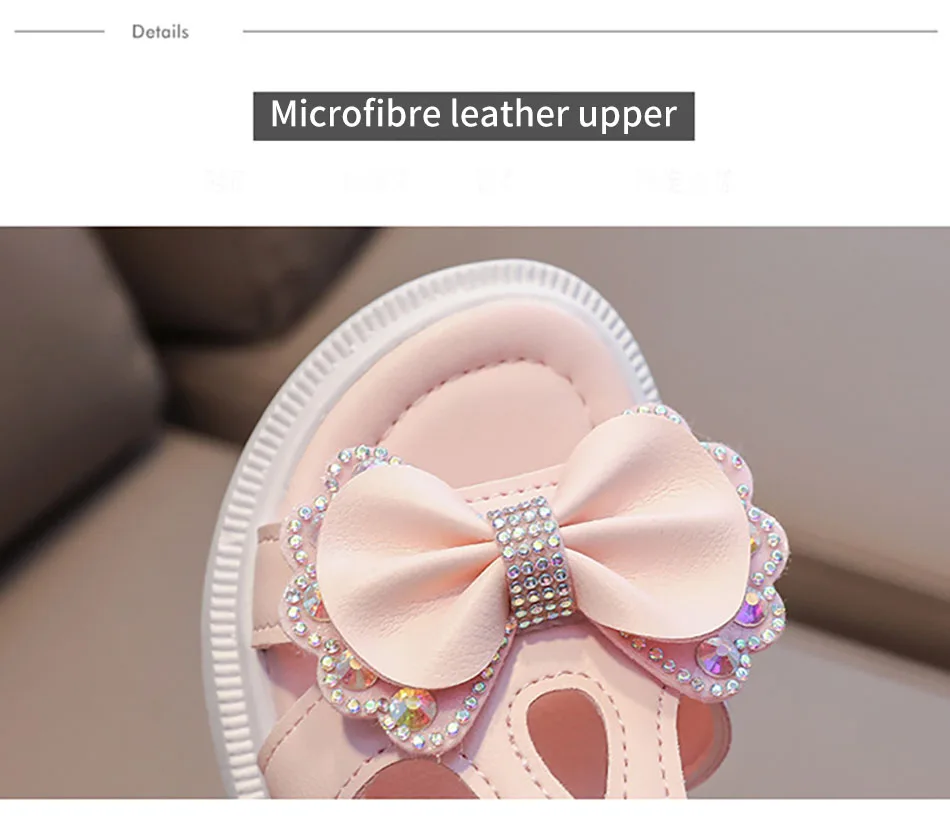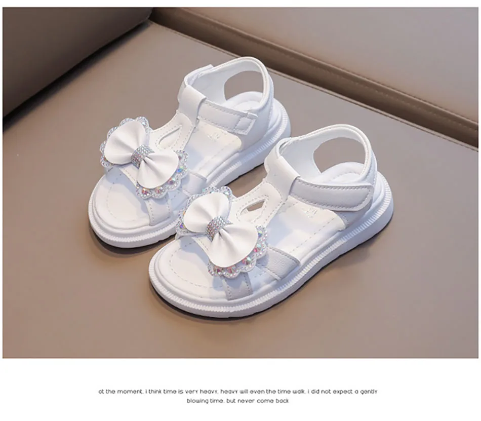 Nombre: Sandalias para niña, zapatos antideslizantes y transpirables para primeros pasos con correa mágica, suela de espuma viscoelástica suave, zapatos de parque infantil de verano con lazo brillante
