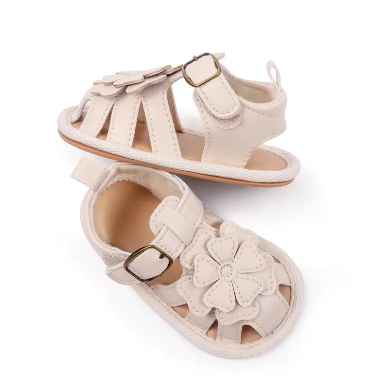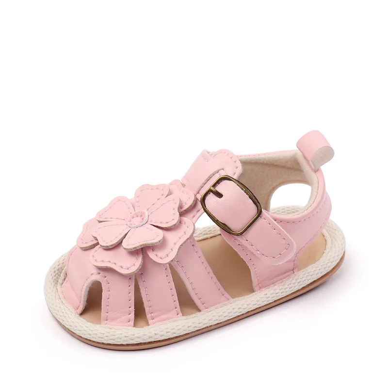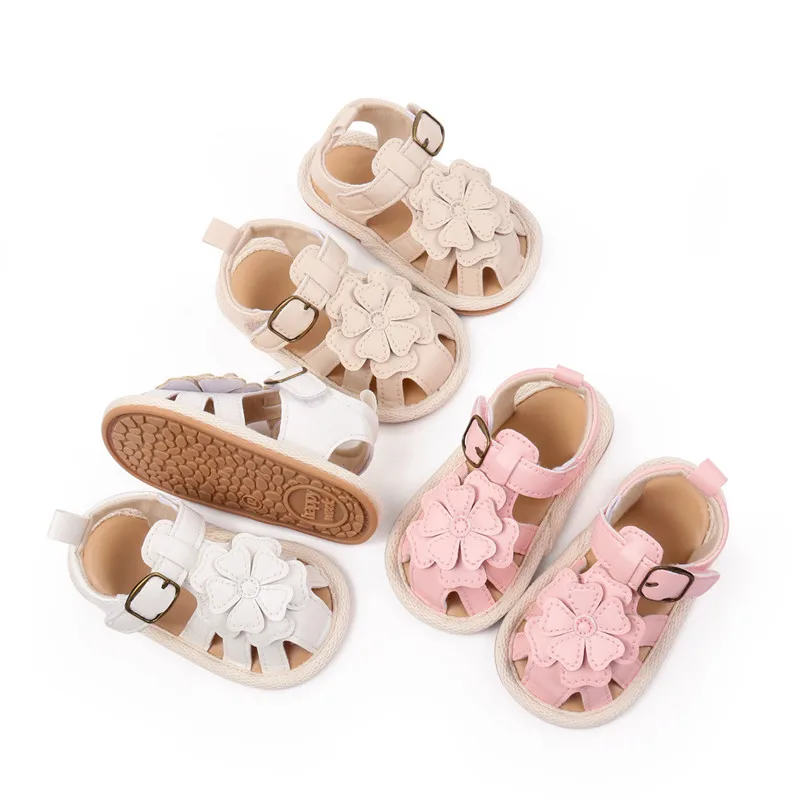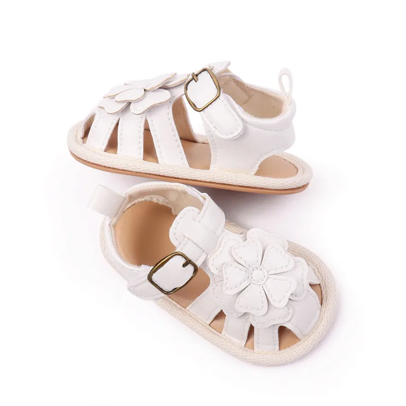 Sandalias para niñas, nuevos zapatos planos de verano para bebés, lindos zapatos de cuna de PU con flores para recién nacidos