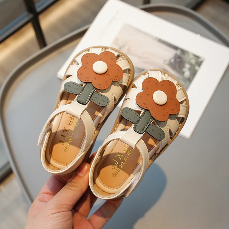 Sandalias para niñas, zapatos de playa de verano para niños, zapatos de princesa de flores, zapatos informales antideslizantes de suela blanda para niños pequeños, talla 21-30