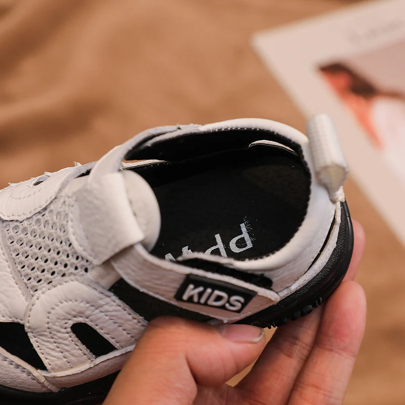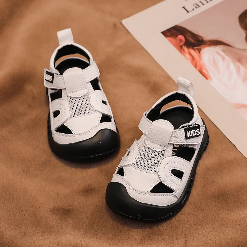 Comprar Sandalias de piel auténtica para bebés y niños, zapatos ligeros de suela suave, descalzos, playa, Verano