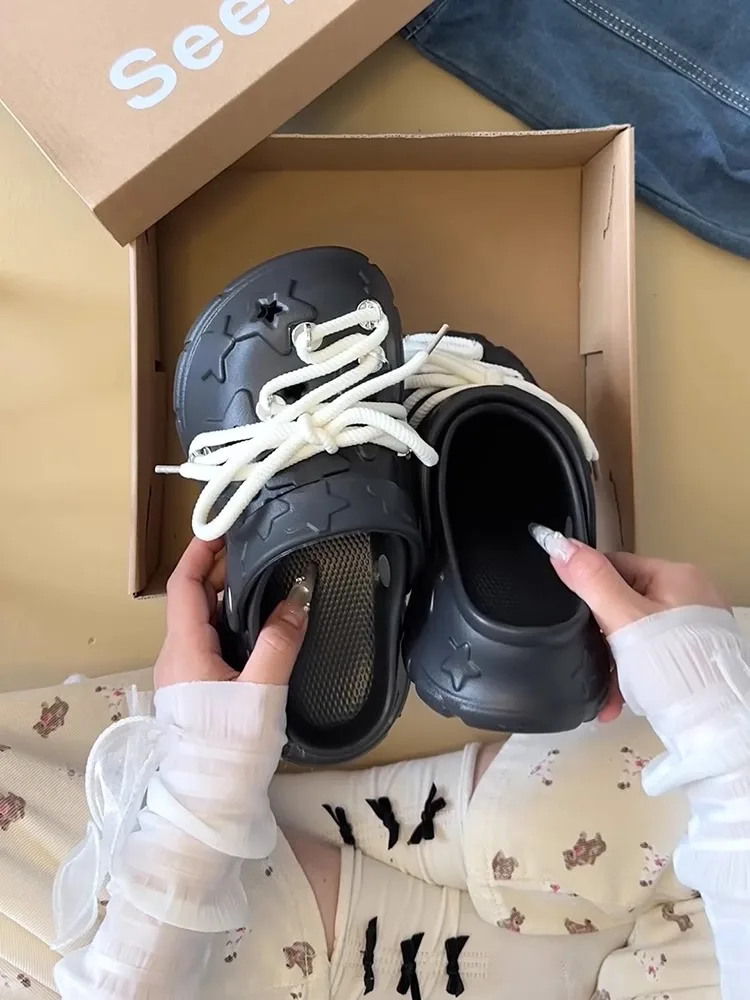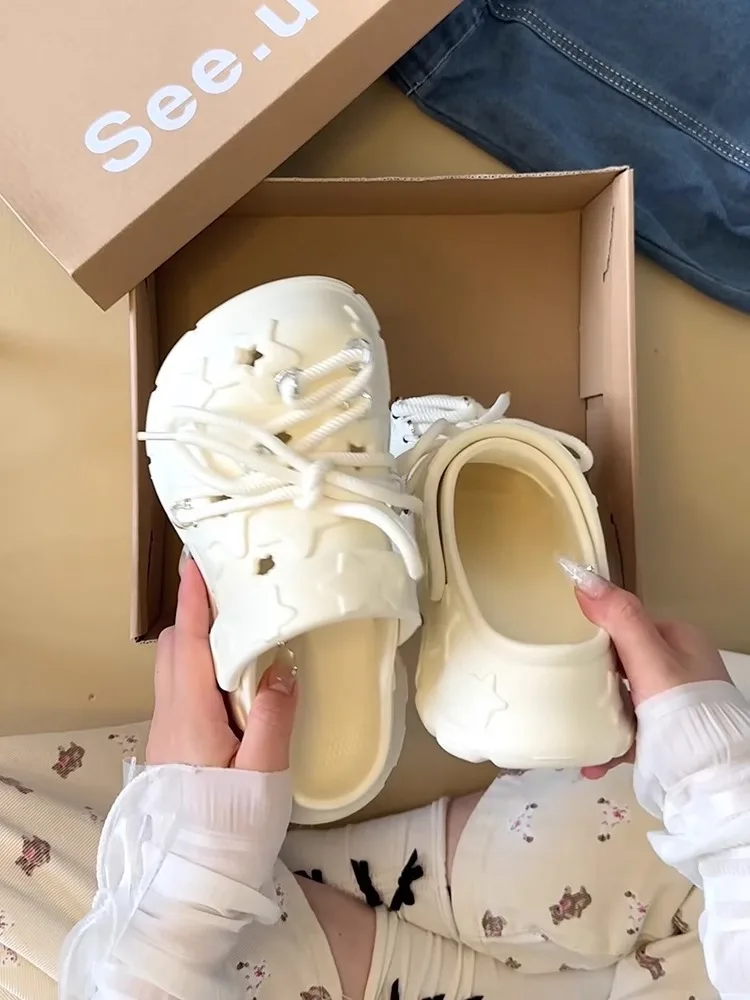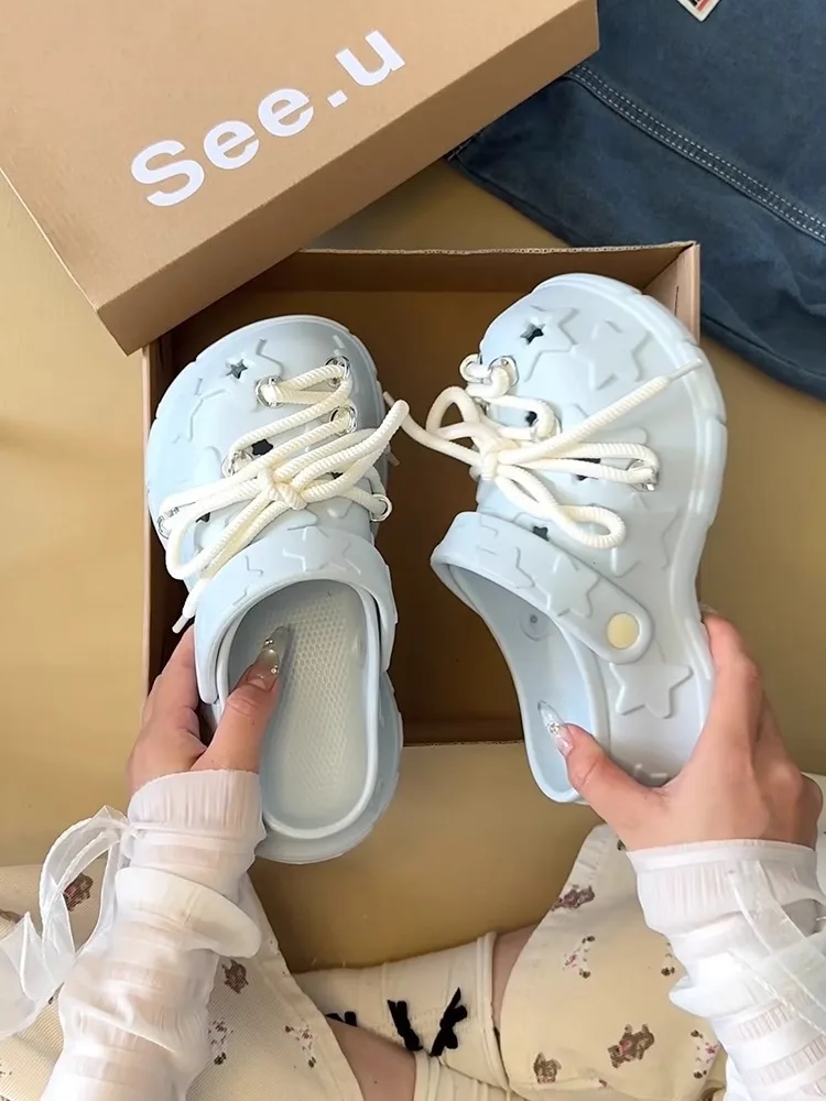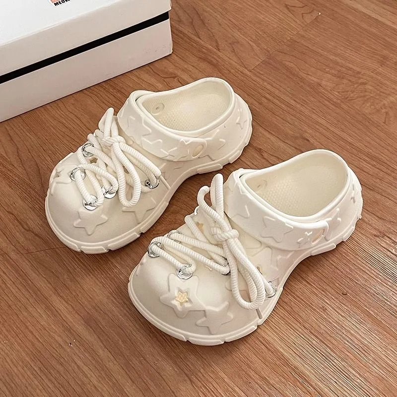 Sandalias de plataforma para mujer, zuecos con cordones DIY para ocio, suela gruesa, calzado para jardín de verano, zapatillas de calle diarias estilo estrella bonitas para mujer