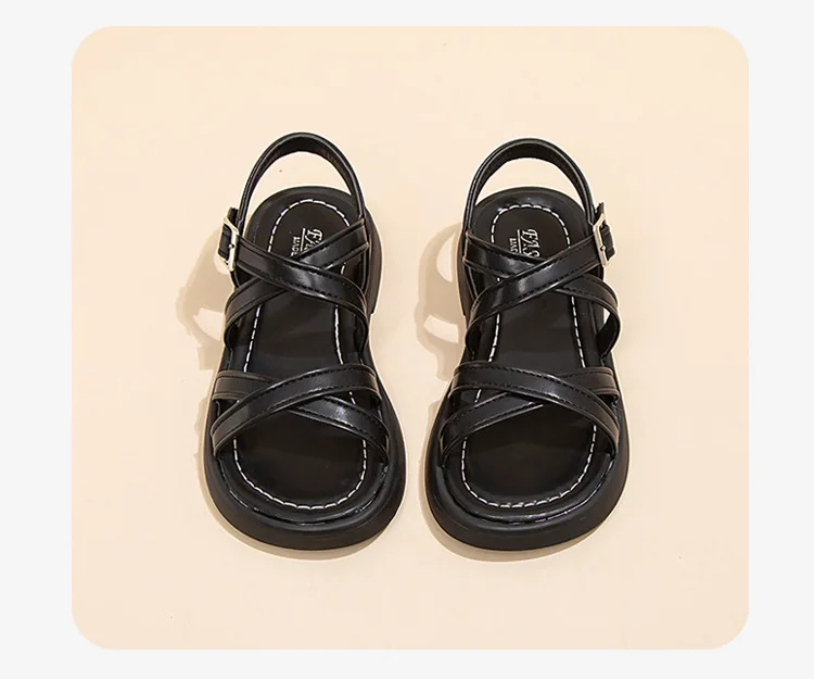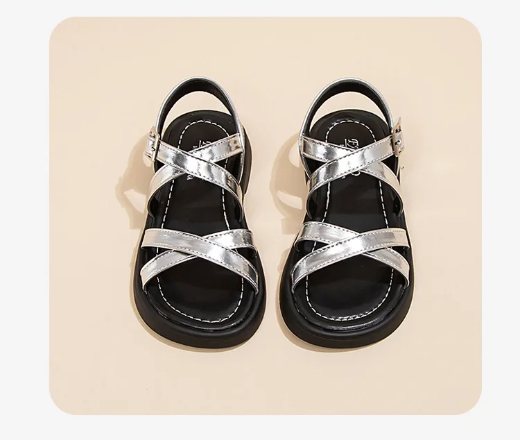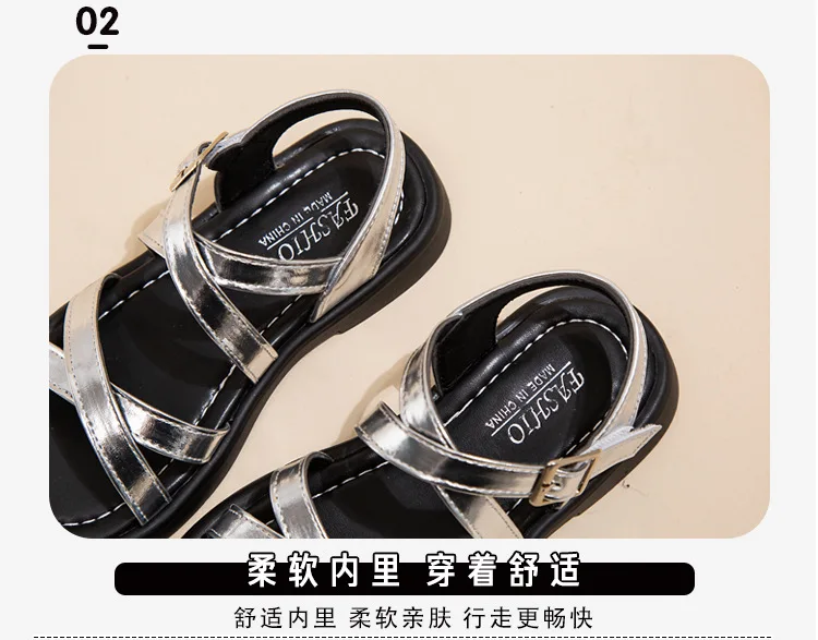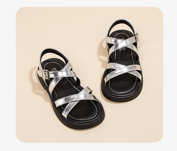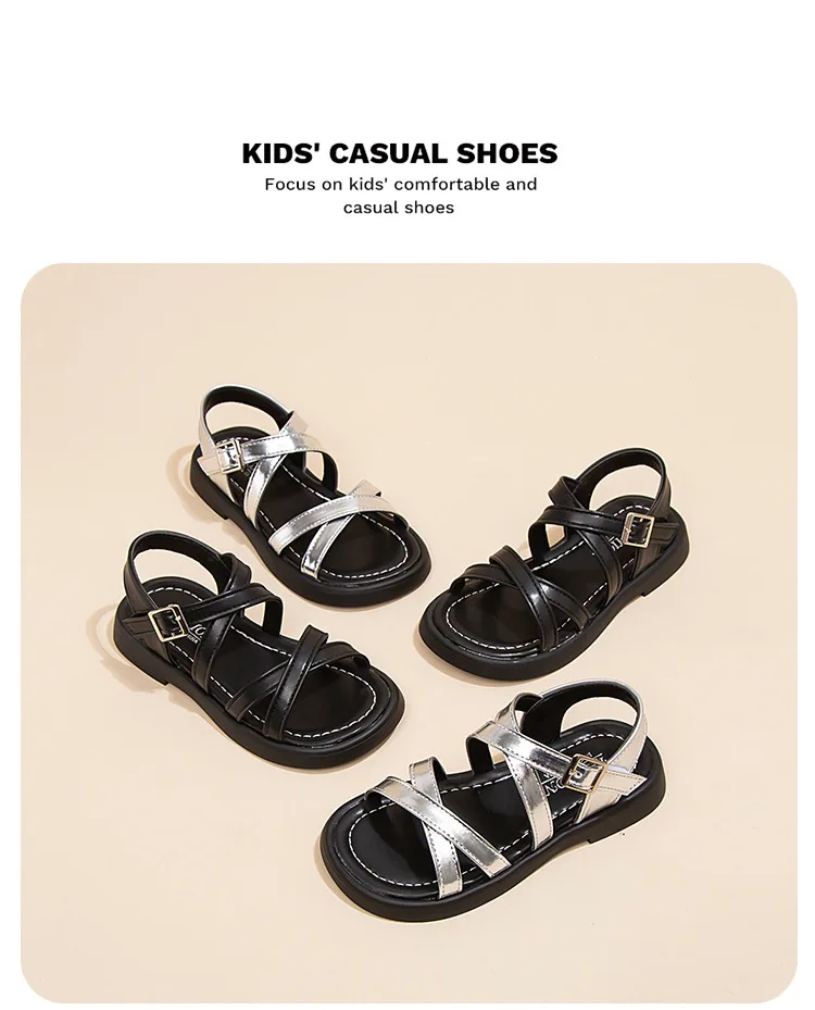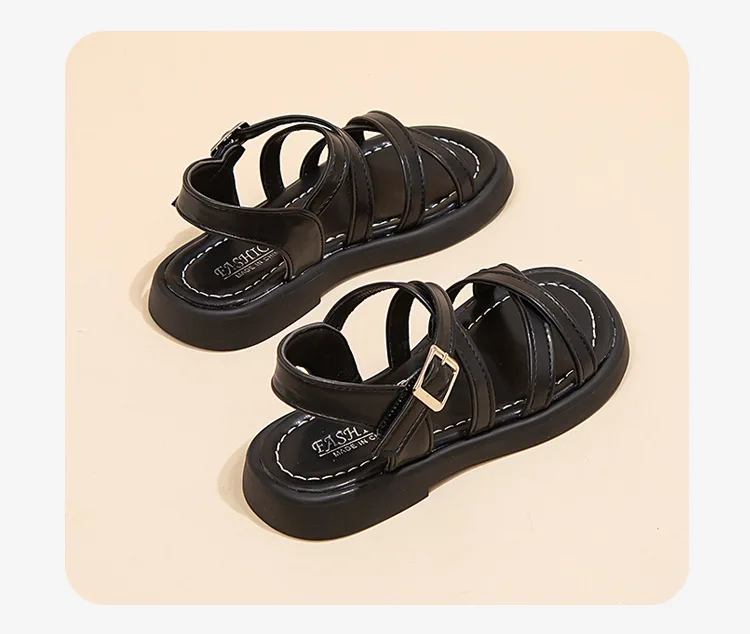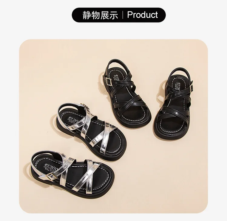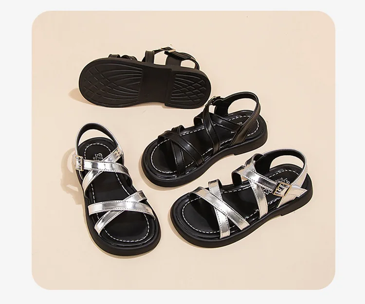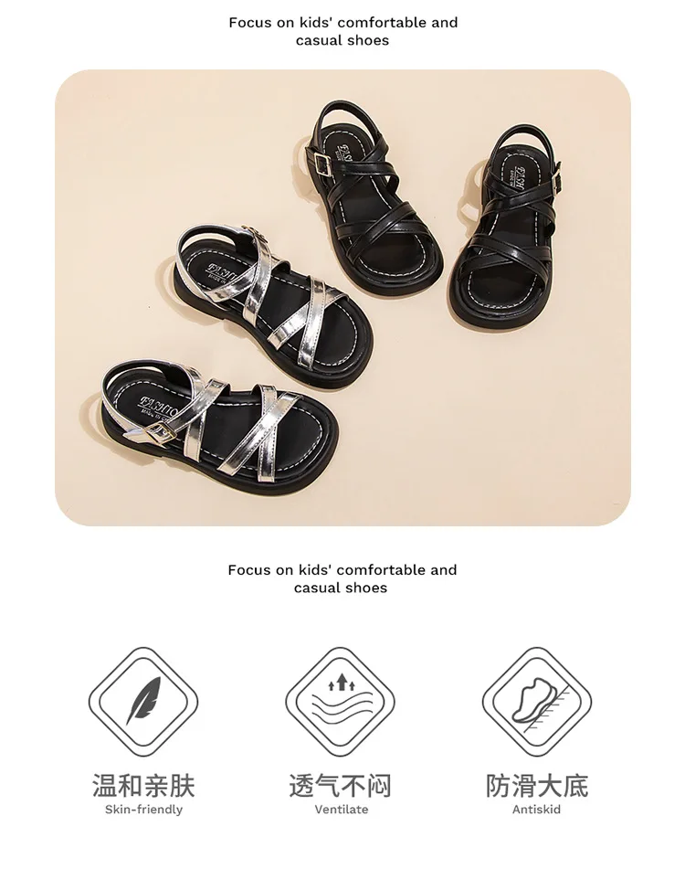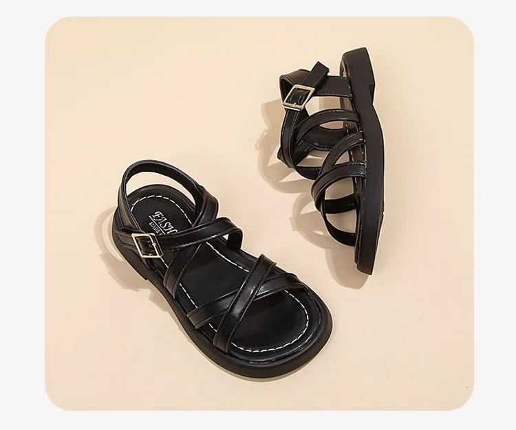 Sandalias romanas de verano para niñas, zapatos antideslizantes de suela suave, Punta abierta, versátiles, de princesa, Color sólido