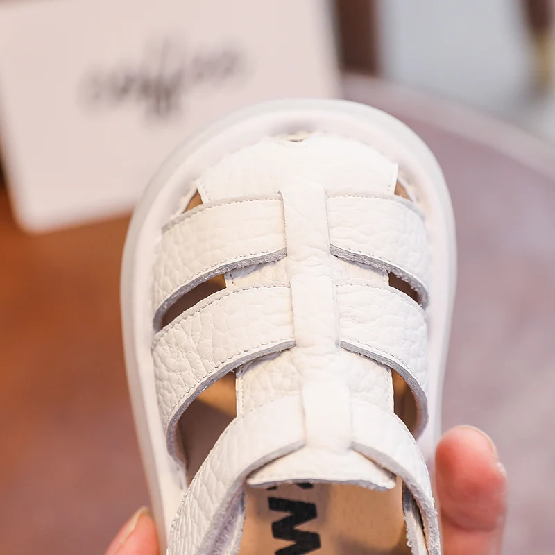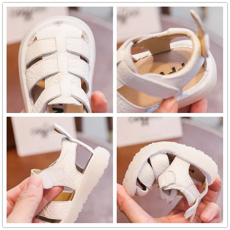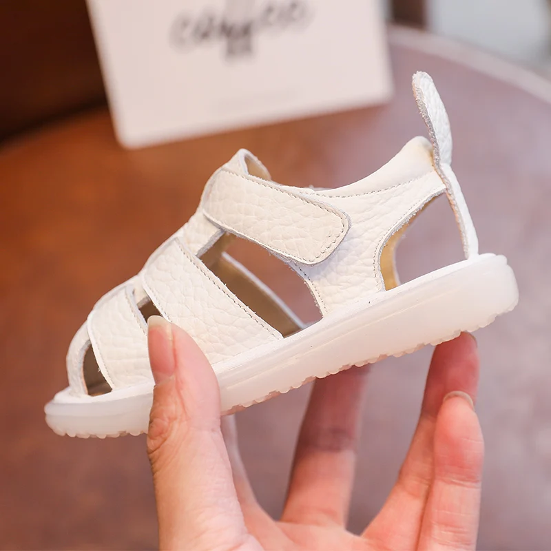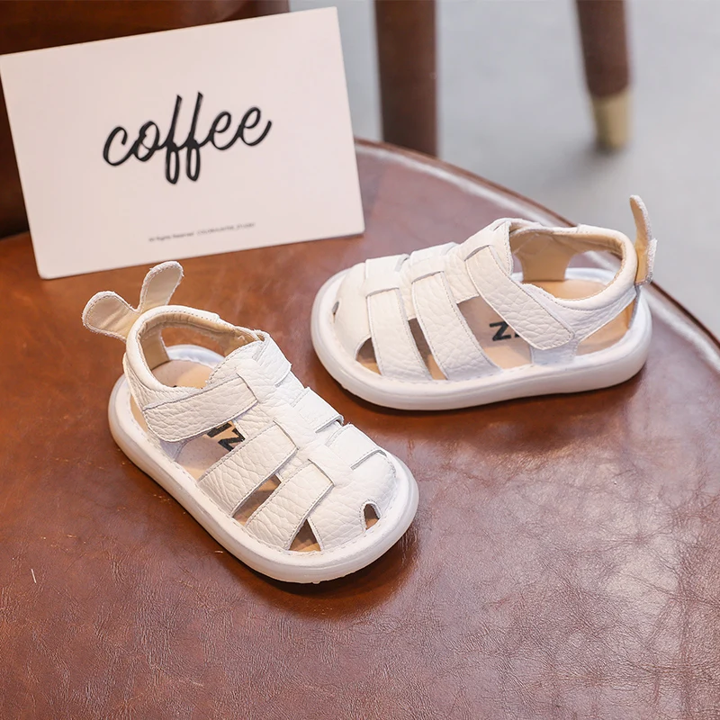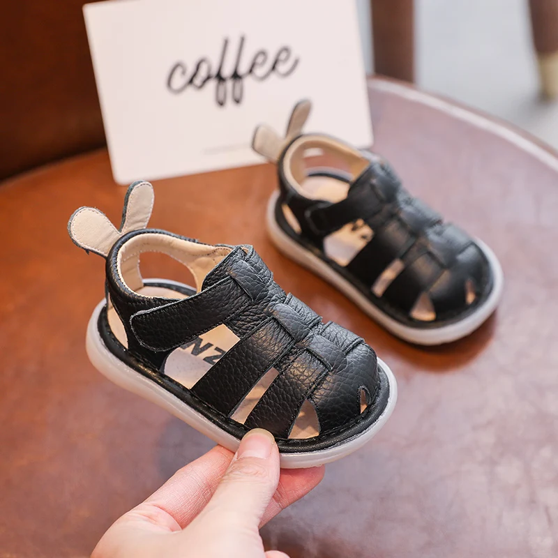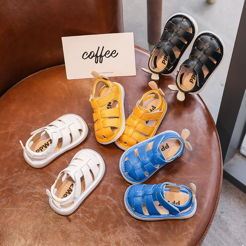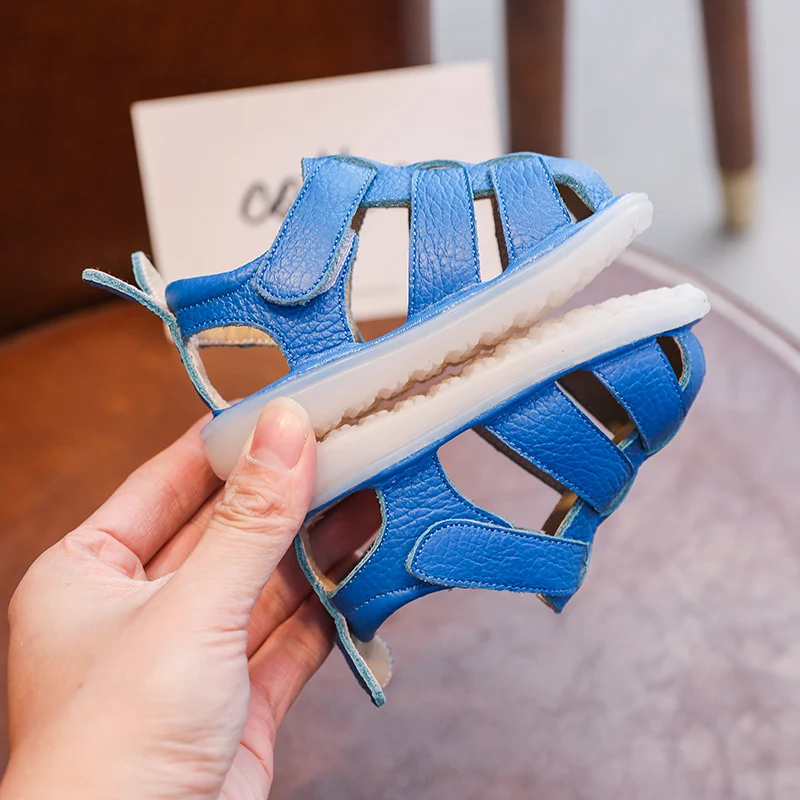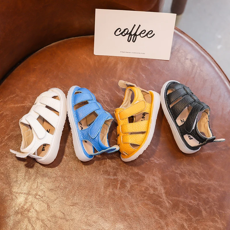 Comprar Sandalias de verano anticolisión para bebés y niños, zapatos para niños pequeños, sandalias de playa de fondo suave de cuero genuino para niños
