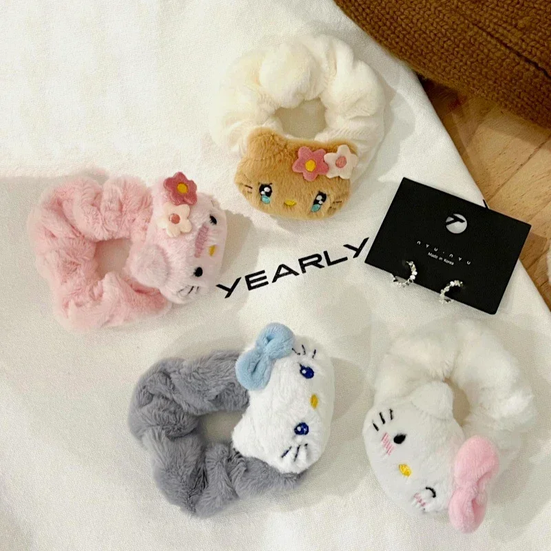 Comprar Sanrio Anime Hello Kitty Scrunchie Lady Tie pelo banda de goma Kawaii tocado niña accesorios para el cabello diadema lindo corazón femenino