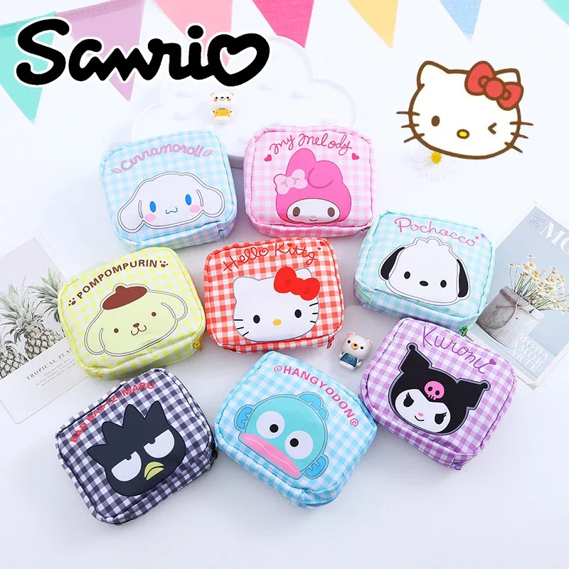 Sanrio-Bolsa de maquillaje para mujer y niña, 11 estilos, Hello Kitty, tampón, servilleta, monedero, toallas sanitarias, organizador de Cables de datos