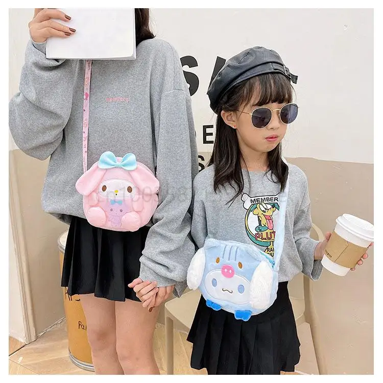 Sanrio-Bolsa de mensajero de dibujos animados para niña, bolso de felpa de un hombro, portátil, cero billetera, regalo para niñas, mochila de felpa, bolsa de almacenamiento