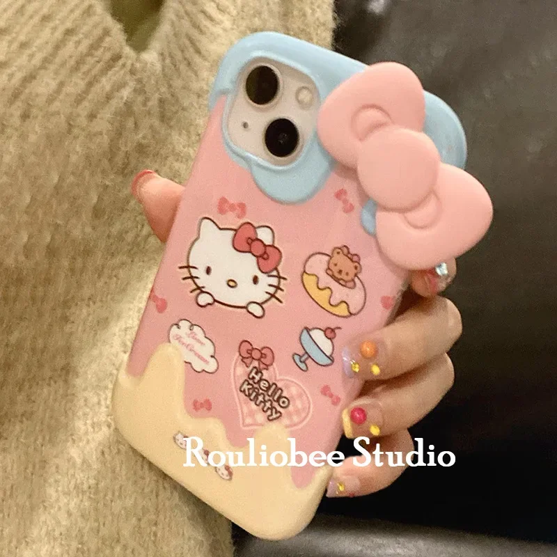 Comprar Sanrio-Bonita funda de teléfono de Hello Kitty para IPhone 14 Pro Max 13 12 11 X XR XS Max, funda trasera de silicona de Anime Kawaii Kitty