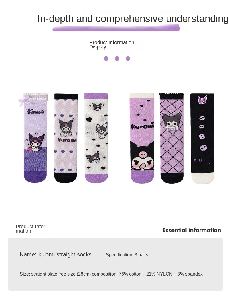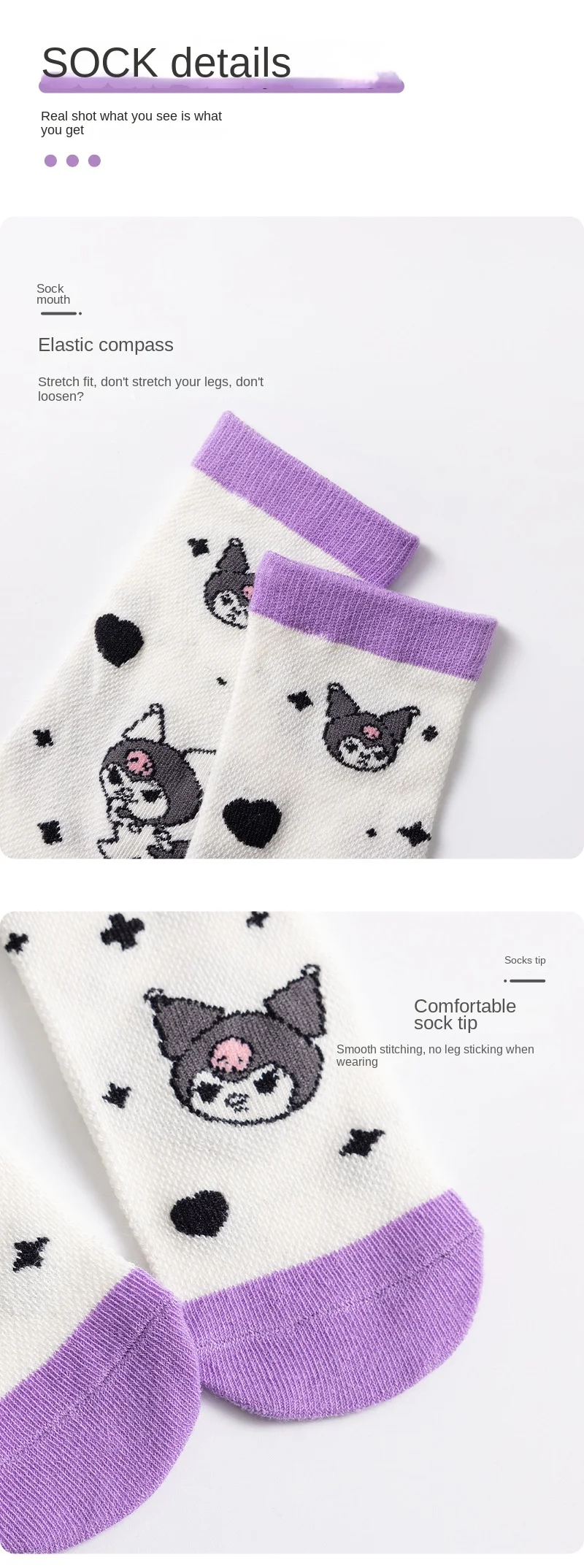 Comprar Sanrio-calcetines de media pantorrilla para niños, medias creativas de malla, transpirables, a la moda, Anime, 3 pares