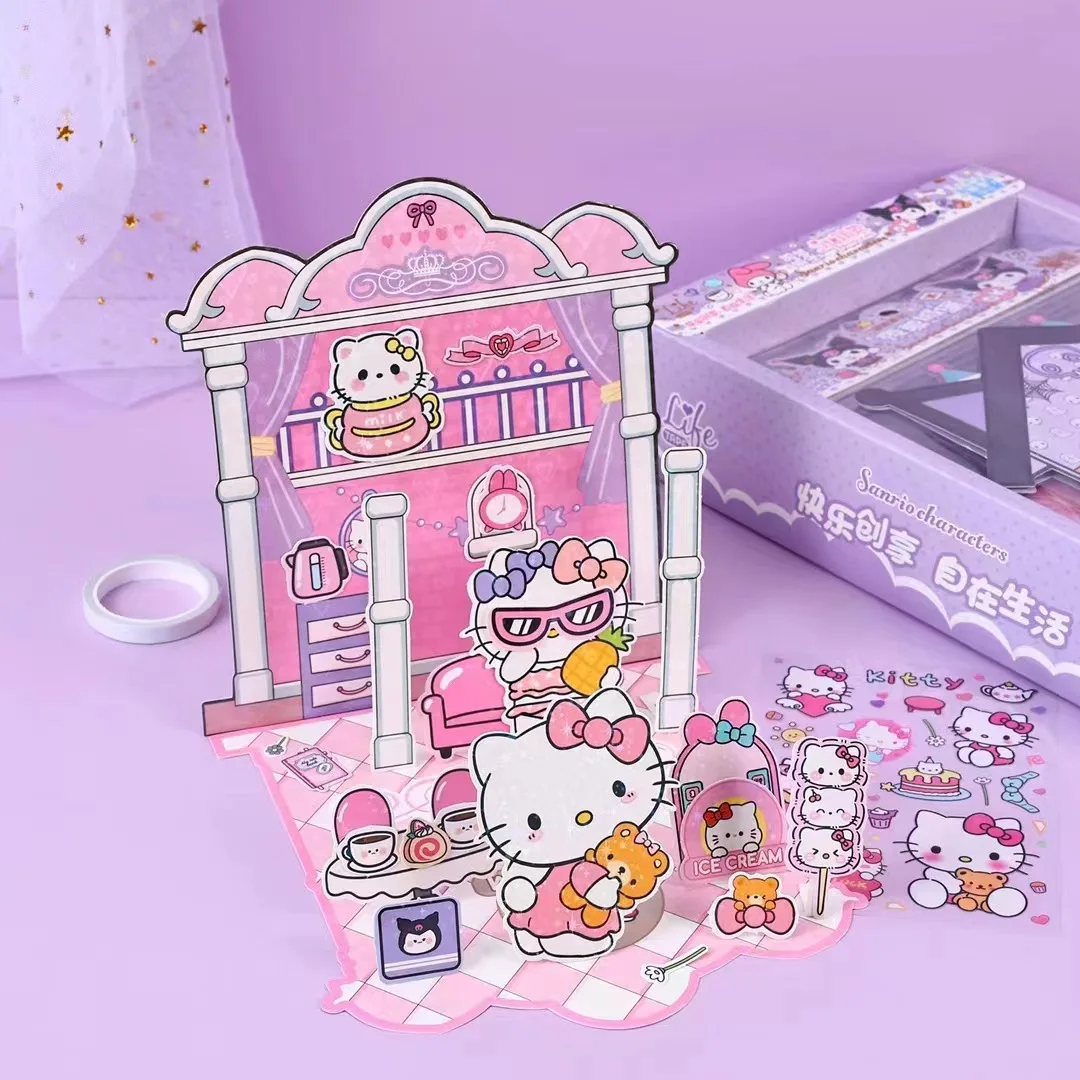 Comprar Sanrio-Castillo tridimensional de Hello Kitty Kuromi, libro silencioso de dibujos animados, juguete para niña, regalo para niños