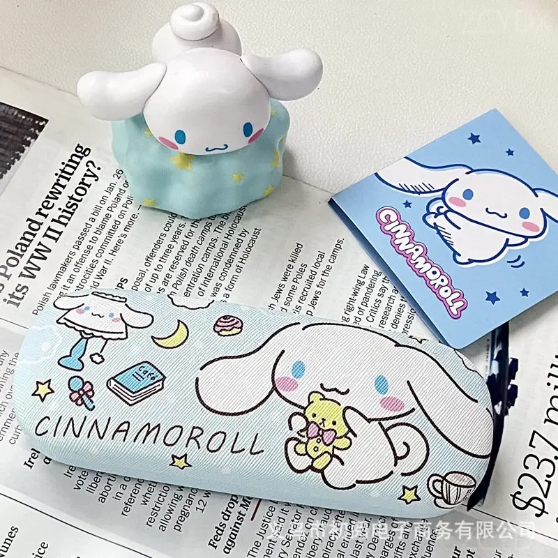 Sanrio Cinnamoroll-estuche de gafas de cuero para mujer, estuche de gafas de Anime Kawaii, caja de almacenamiento de viaje portátil de gafas, estuche de gafas de Marco duro