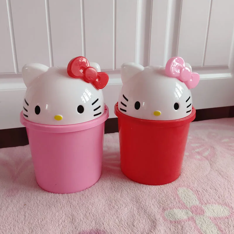 Comprar Sanrio-cubo de basura de escritorio de Hello Kitty, cesta de basura de dibujos animados alrededor del escritorio del estudiante, Linda caja de almacenamiento cuadrada con tapa