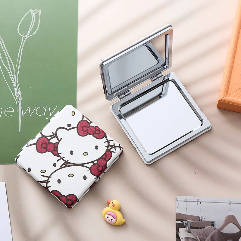 Comprar Sanrio-Espejo de maquillaje plegable de Hello Kitty para mujer, accesorio creativo de cuero PU, de doble cara, para estudiantes