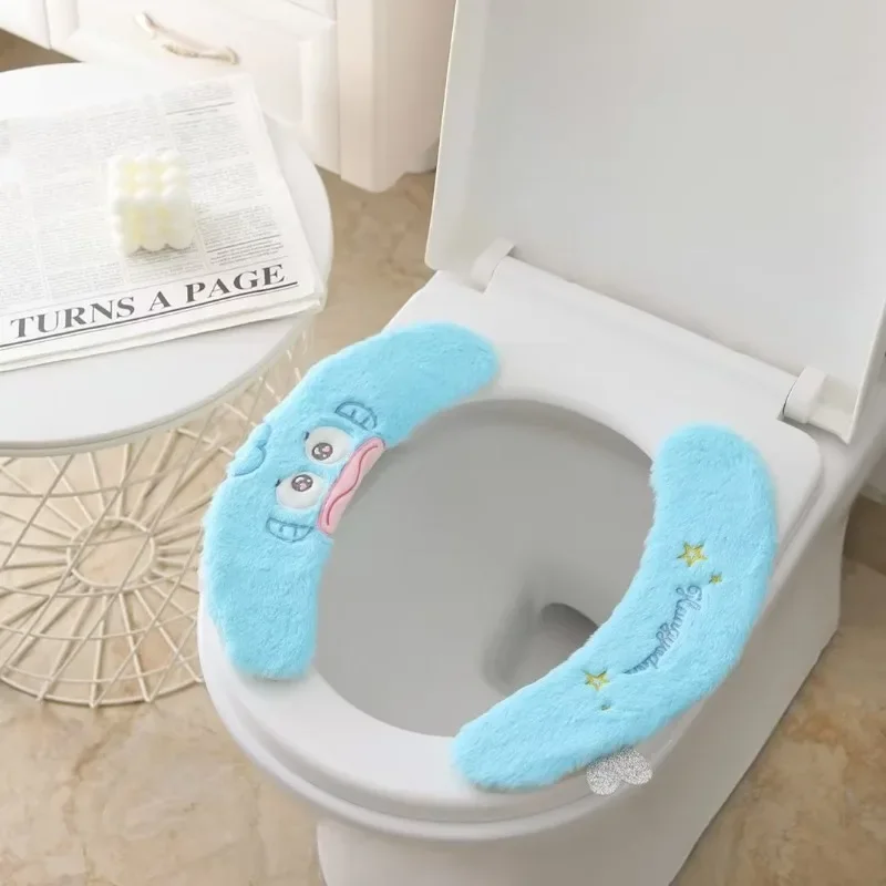 Comprar Sanrio-Funda de asiento de inodoro de felpa de Hello Kitty, cálida, Kuromi Melody, Cinnamoroll, alfombrilla suave, accesorios de baño, nuevo, Invierno