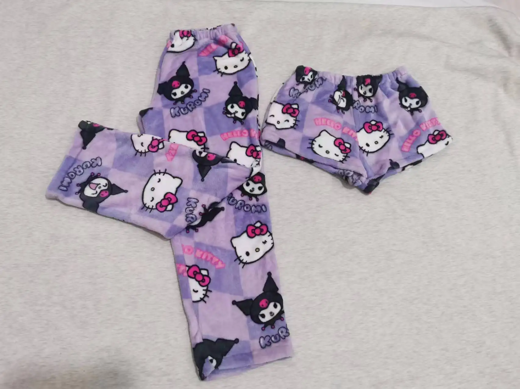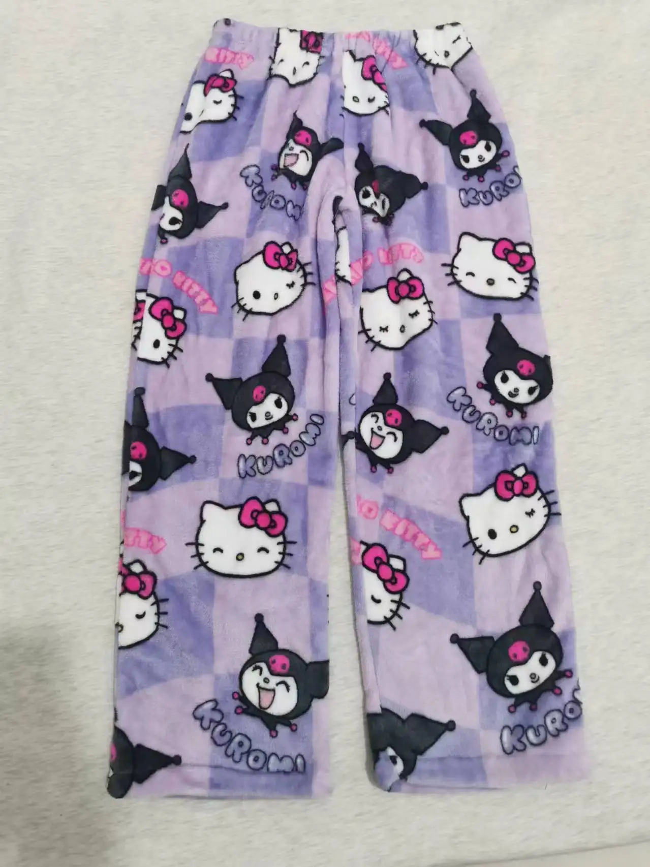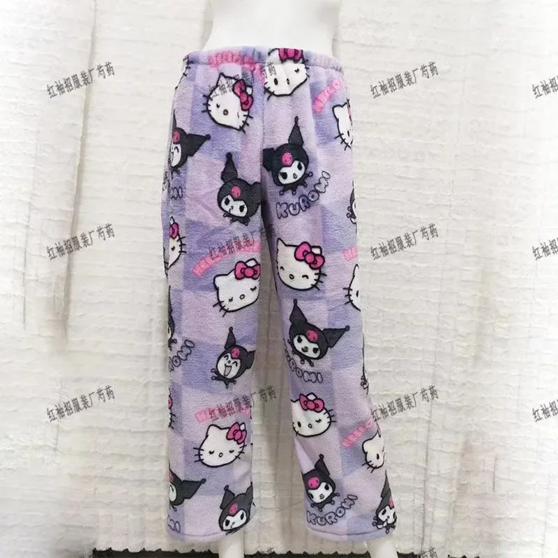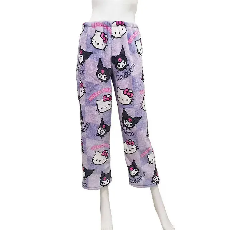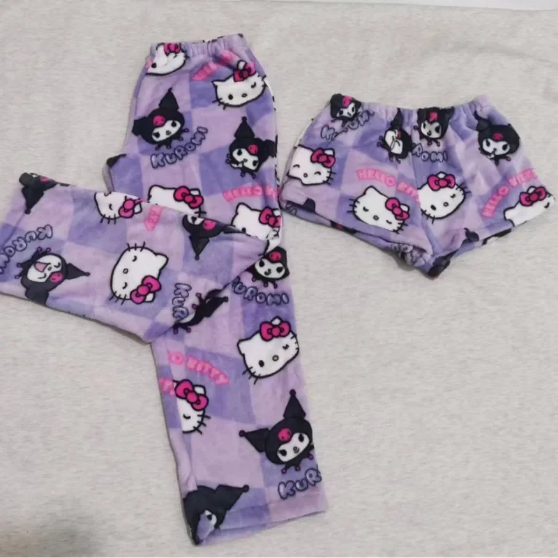 Comprar Sanrio Hello Kitty Kuromi pantalones de pijama de felpa Kawaii para mujer dibujos animados Casual hogar Otoño e Invierno pantalones largos niñas pantalones cortos regalo