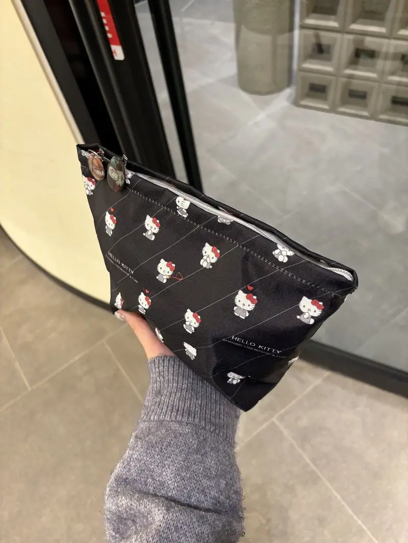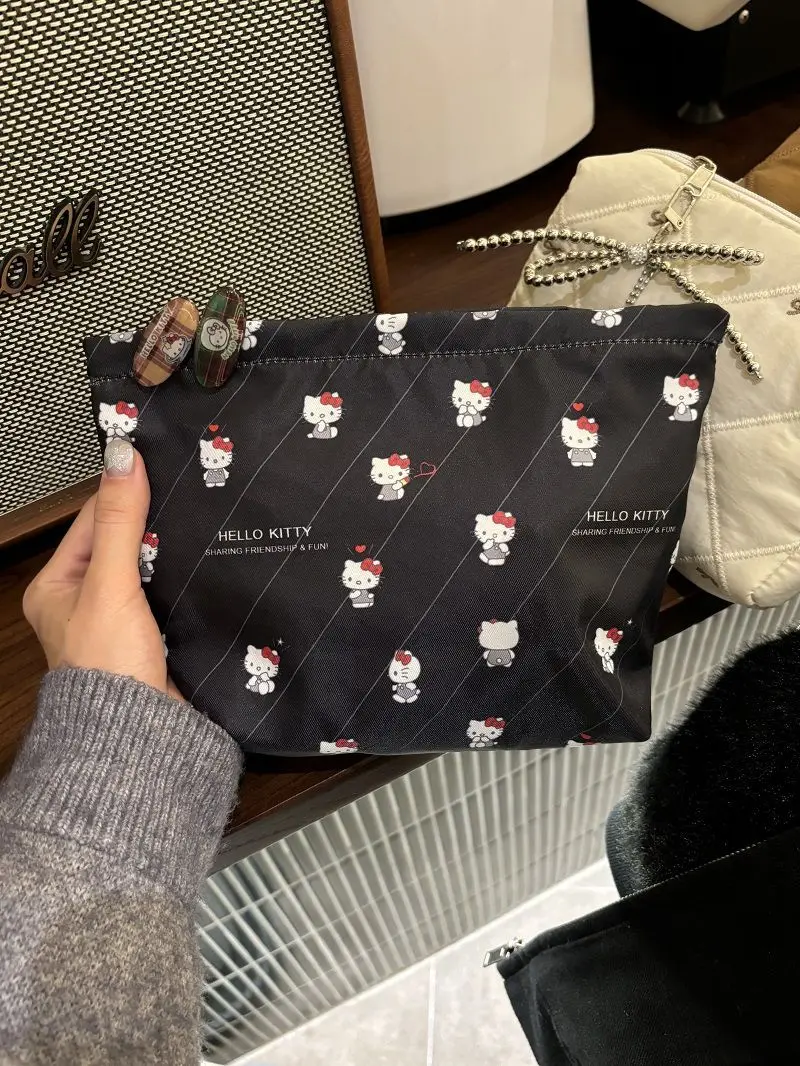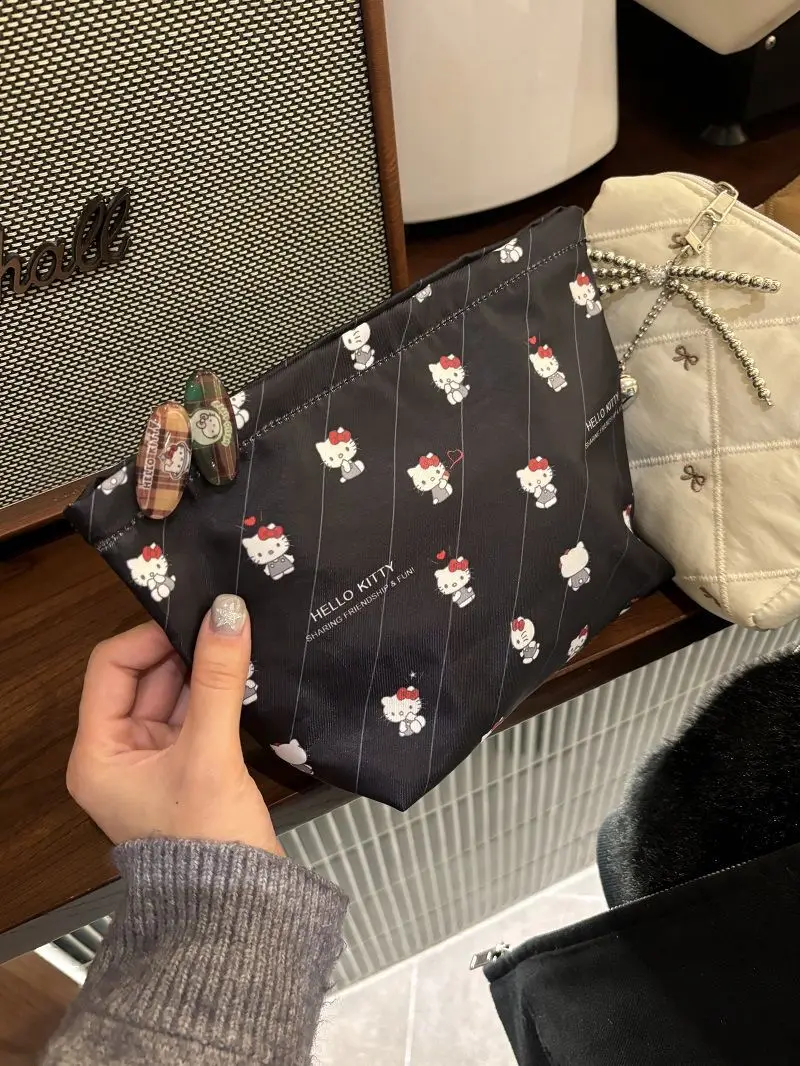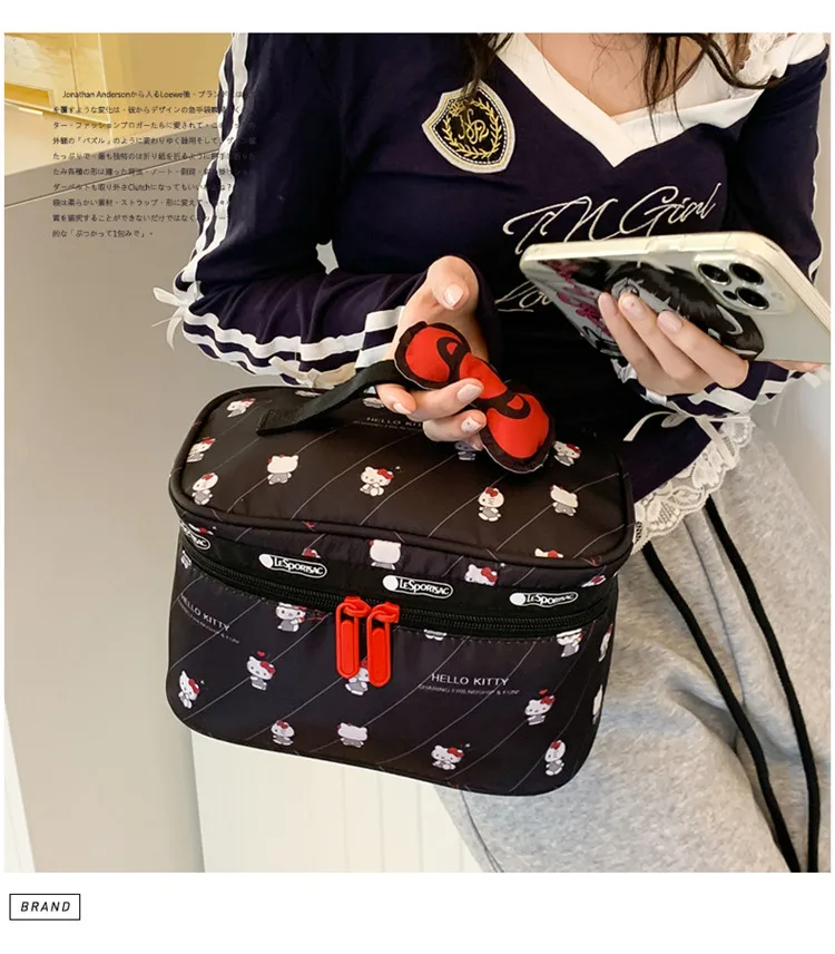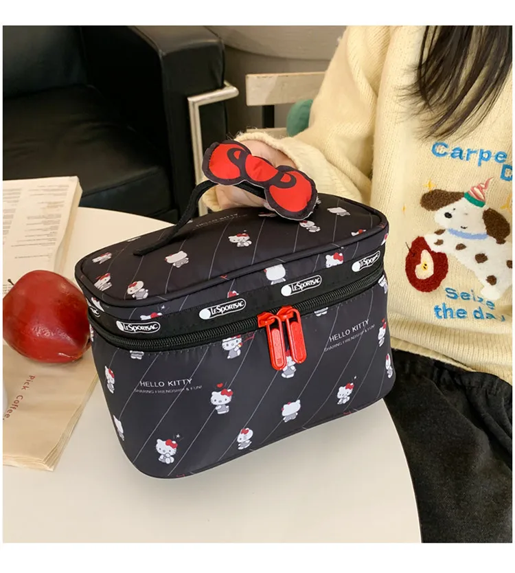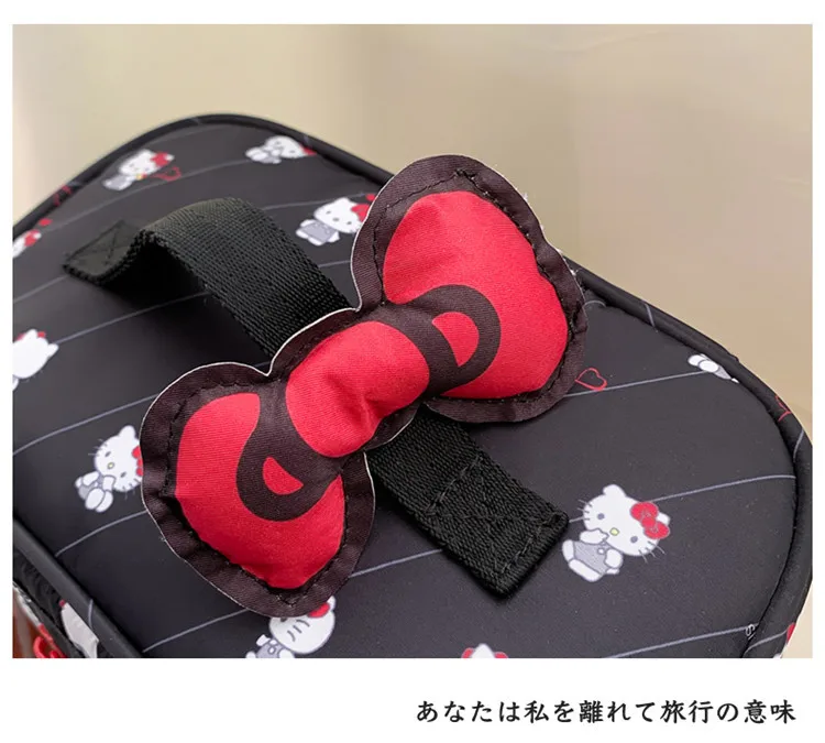 Sanrio Hello Kitty monedero pajarita cartera bolsa de cosméticos Anime estampado completo Hello Kitty bolsa de almacenamiento de viaje Kawaii chica bolsa regalos