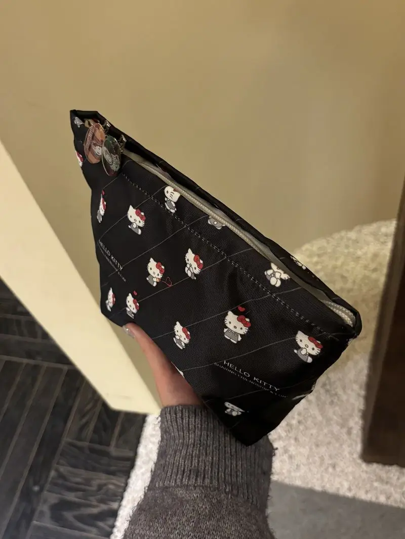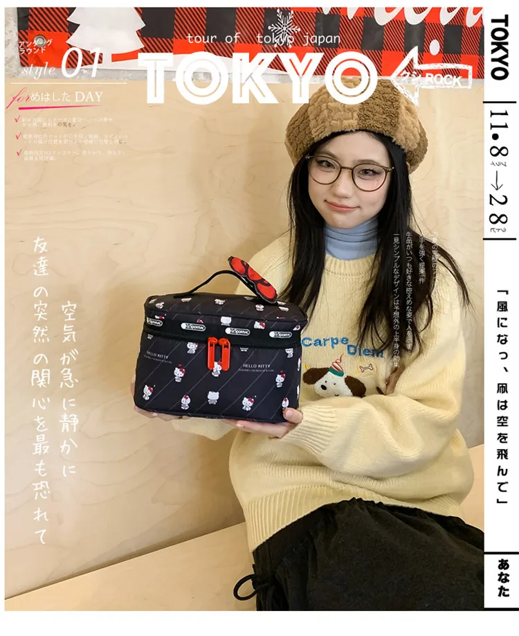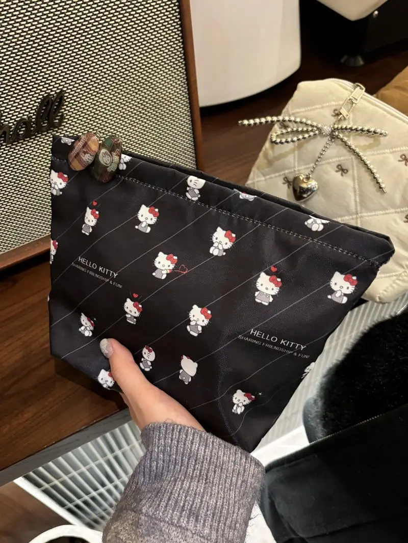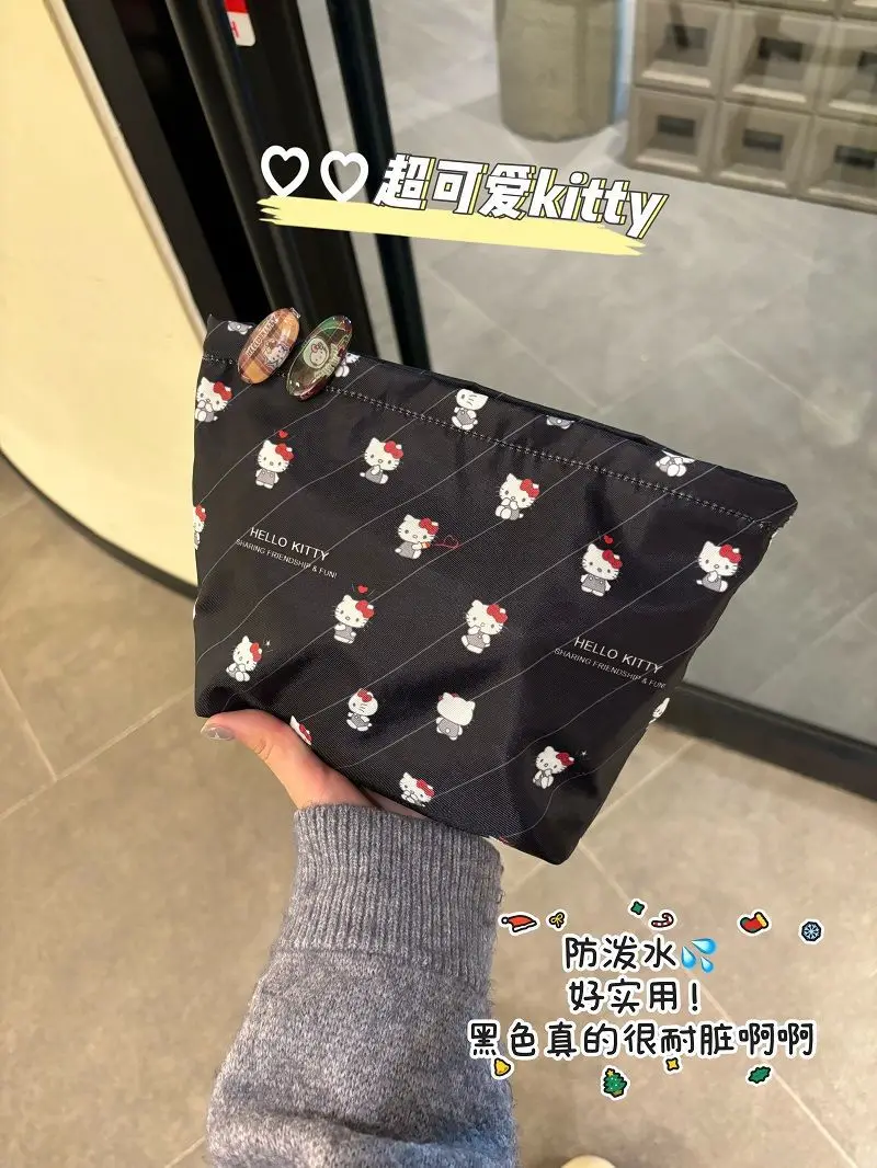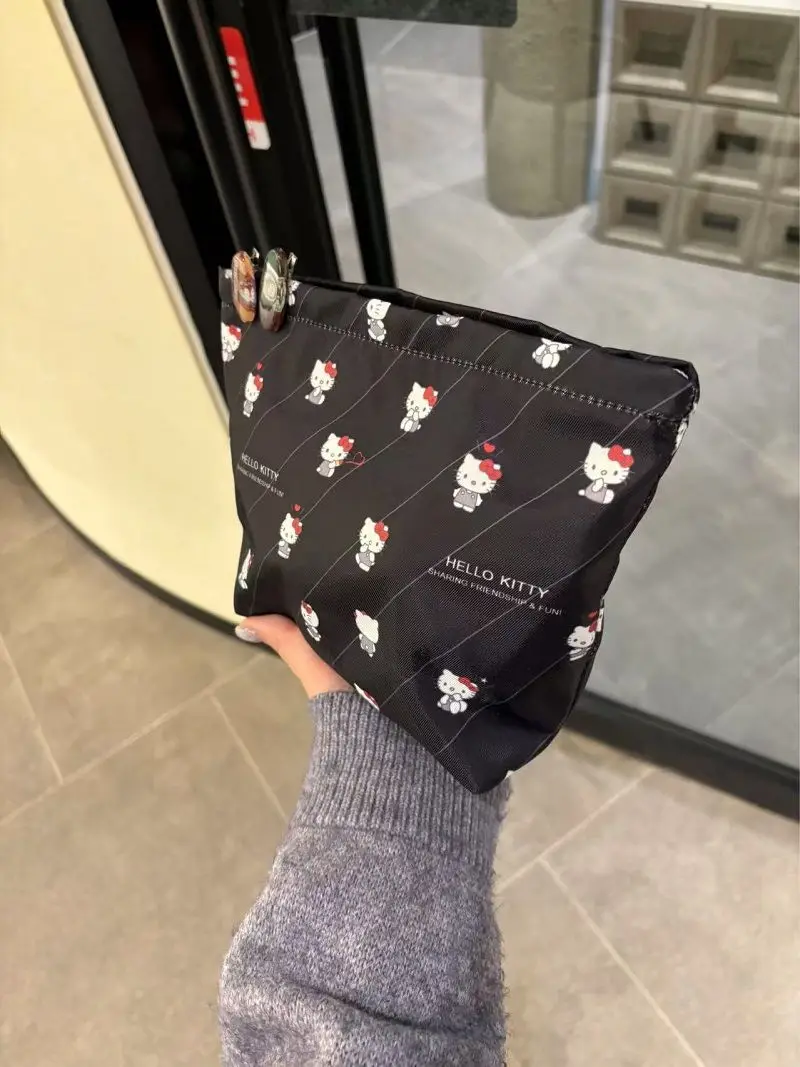 Sanrio Hello Kitty monedero pajarita cartera bolsa de cosméticos Anime estampado completo Hello Kitty bolsa de almacenamiento de viaje Kawaii chica bolsa regalos