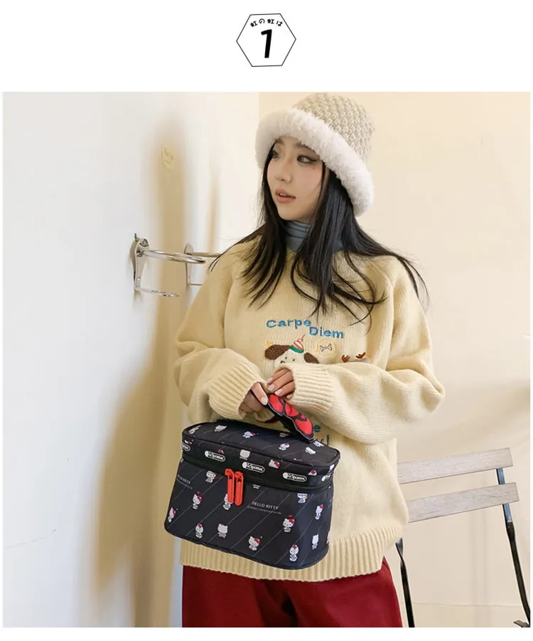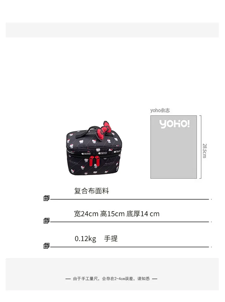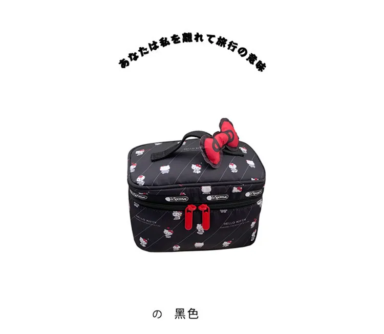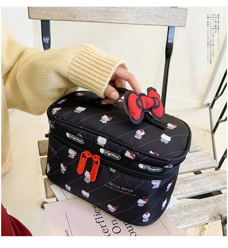 Comprar Sanrio Hello Kitty monedero pajarita cartera bolsa de cosméticos Anime estampado completo Hello Kitty bolsa de almacenamiento de viaje Kawaii chica bolsa regalos