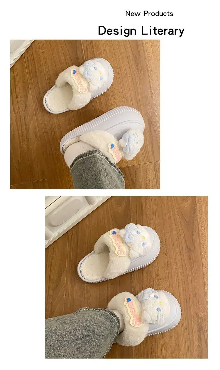 Comprar Sanrio Hello Kitty zapatillas de algodón mujer dibujos animados lindo invierno cálido interior antideslizante suela gruesa Baotou zapatos de algodón extraíbles